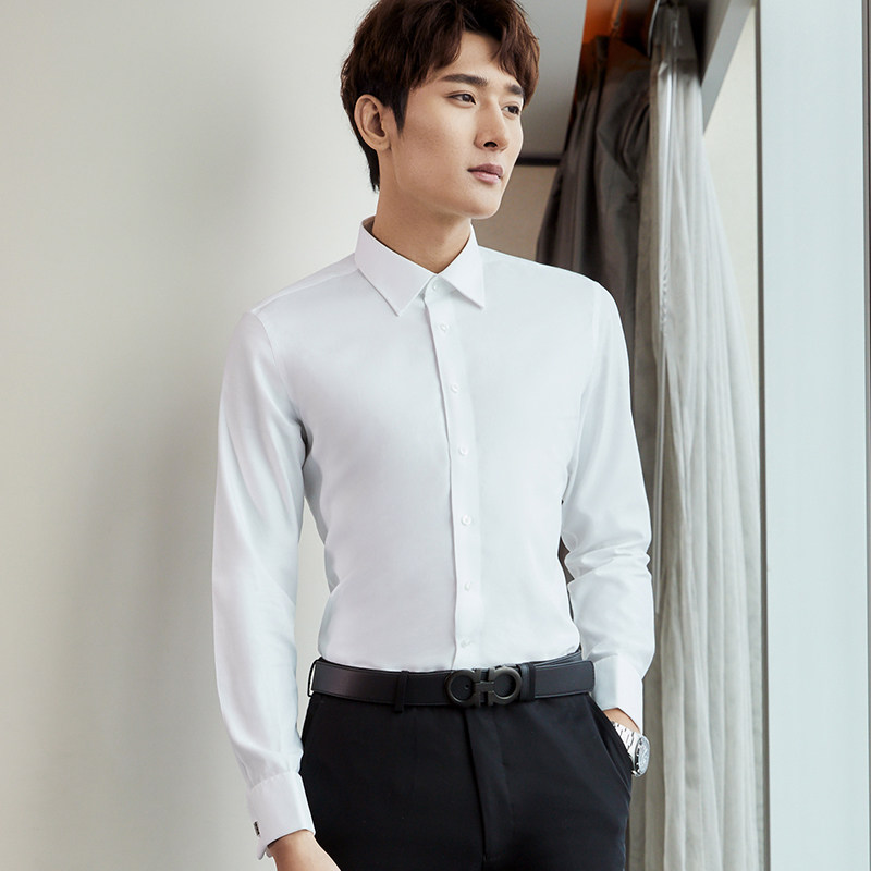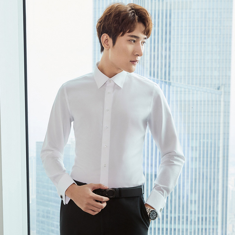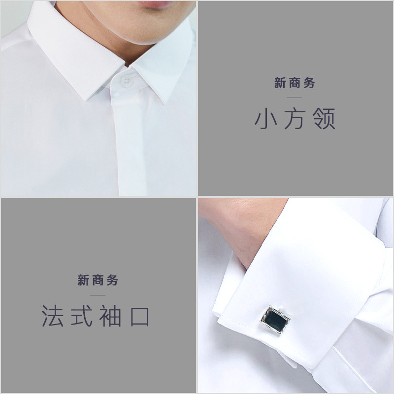 法式衬衫男长袖修身新郎结婚袖扣寸定制商务上班正装男士白色衬衣