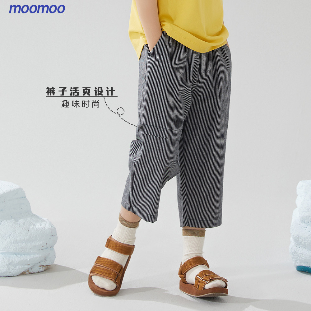 美特斯邦威moomoo童装休闲裤男童造型纯棉透气运动七分梭织裤