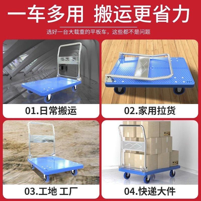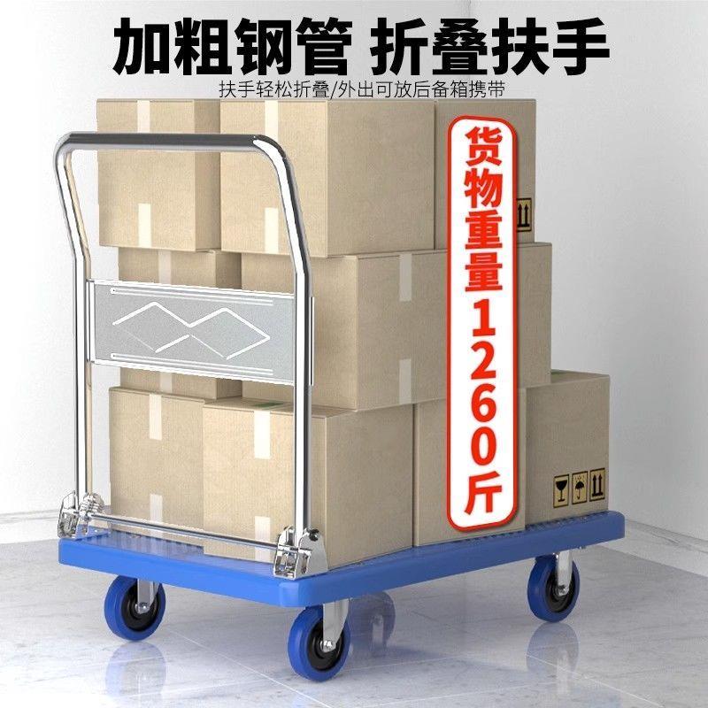 平板小推车静音可折叠手推车平板车搬运拉货车家用便携带刹车钢管