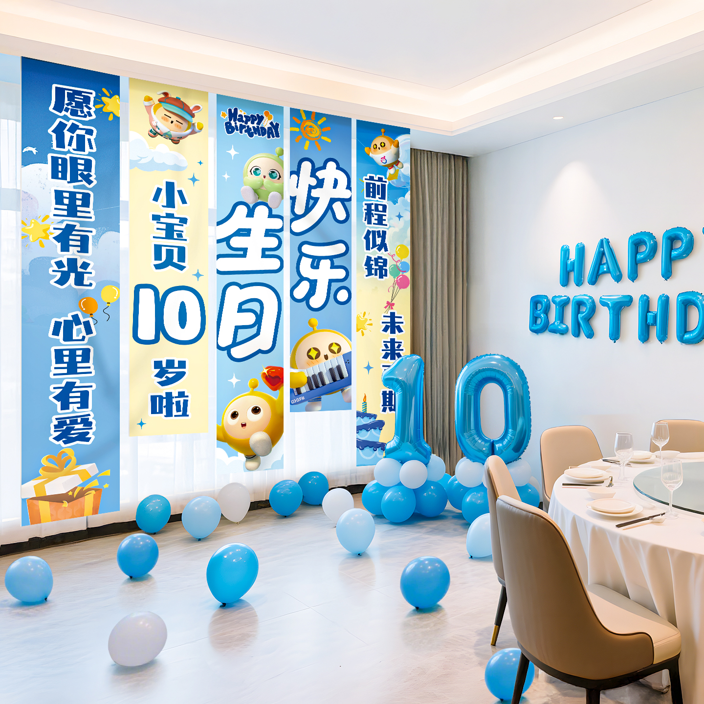 蛋仔派对生日快乐装饰条幅挂布男女孩氛围布置场景背景墙拍照道具