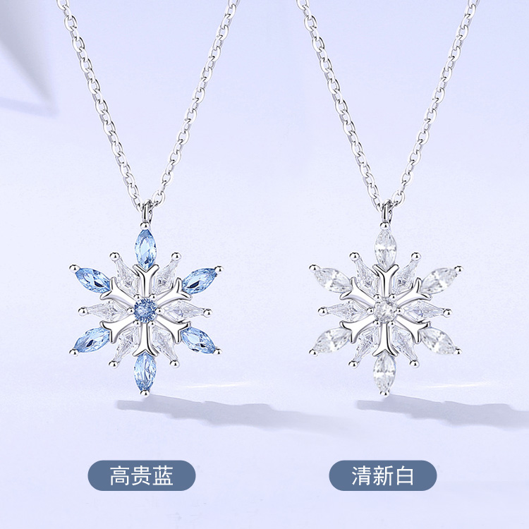 蓝色水晶雪花纯银项链女吊坠高级感轻奢小众送女朋友生日礼物配饰