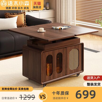 语木小森实木可升降边几带储物柜客厅多功能移动沙发茶几折叠桌面