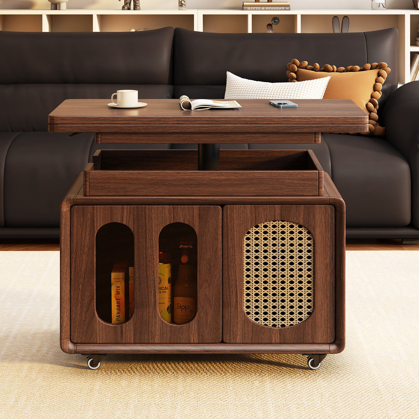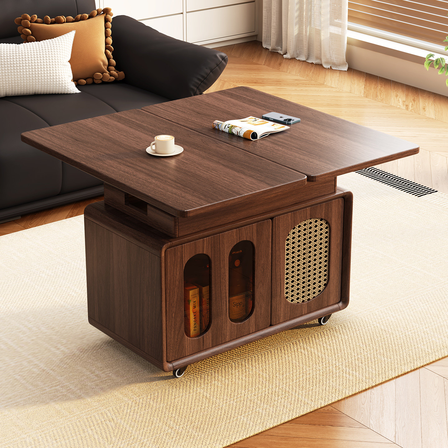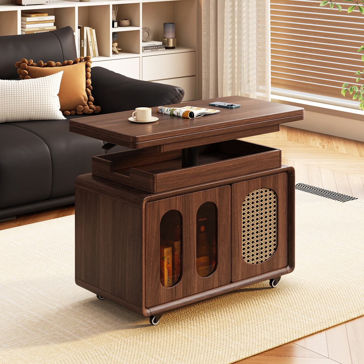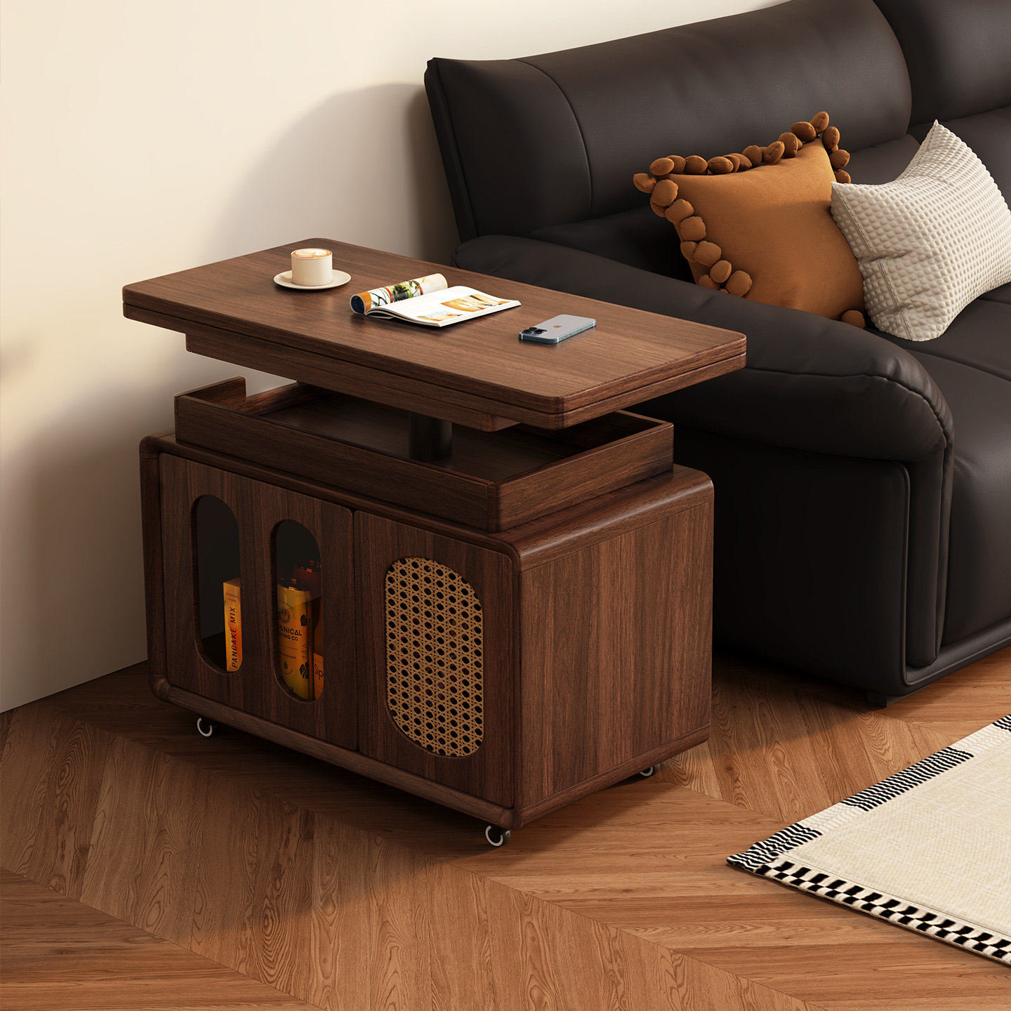 实木可升降折叠储物沙发边几