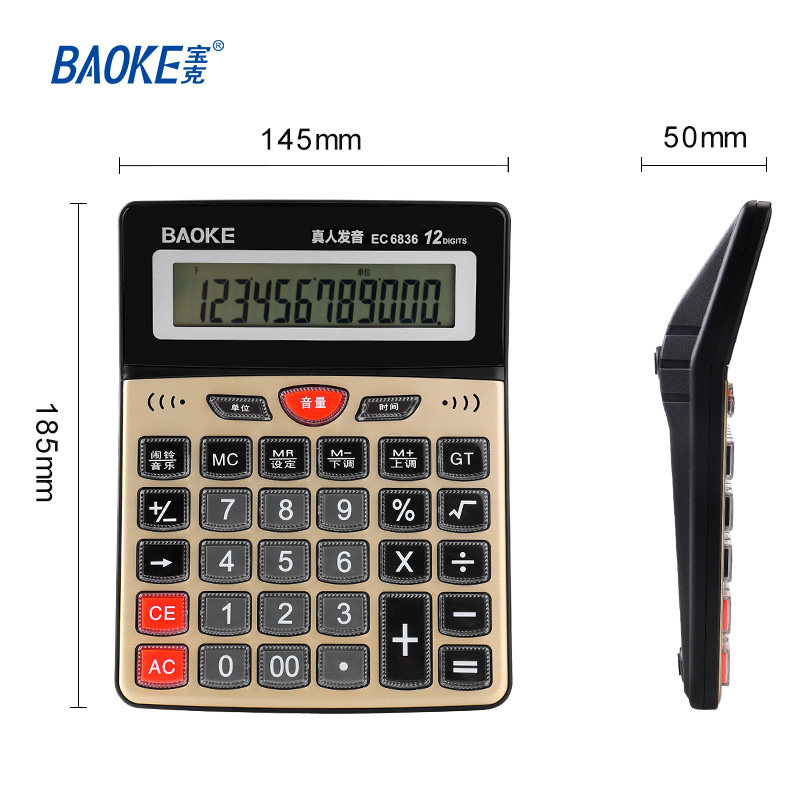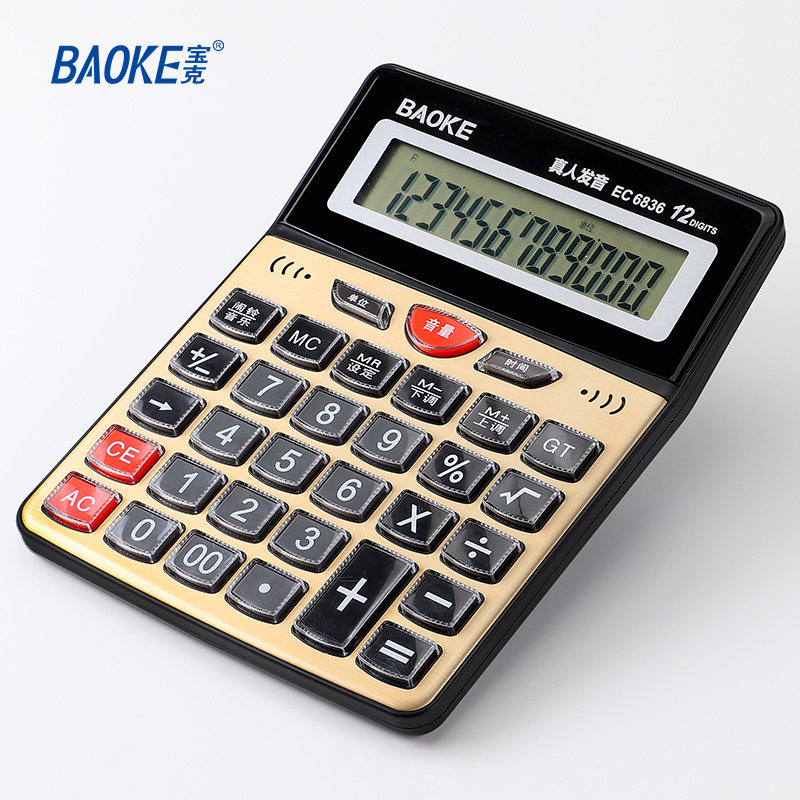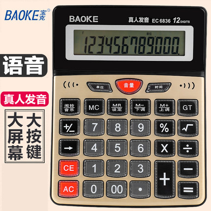 宝克计算器带语音款带声音商用计算机商务会计专用金属面板大号多功能12数计算器大按键大屏幕办公用品送电池