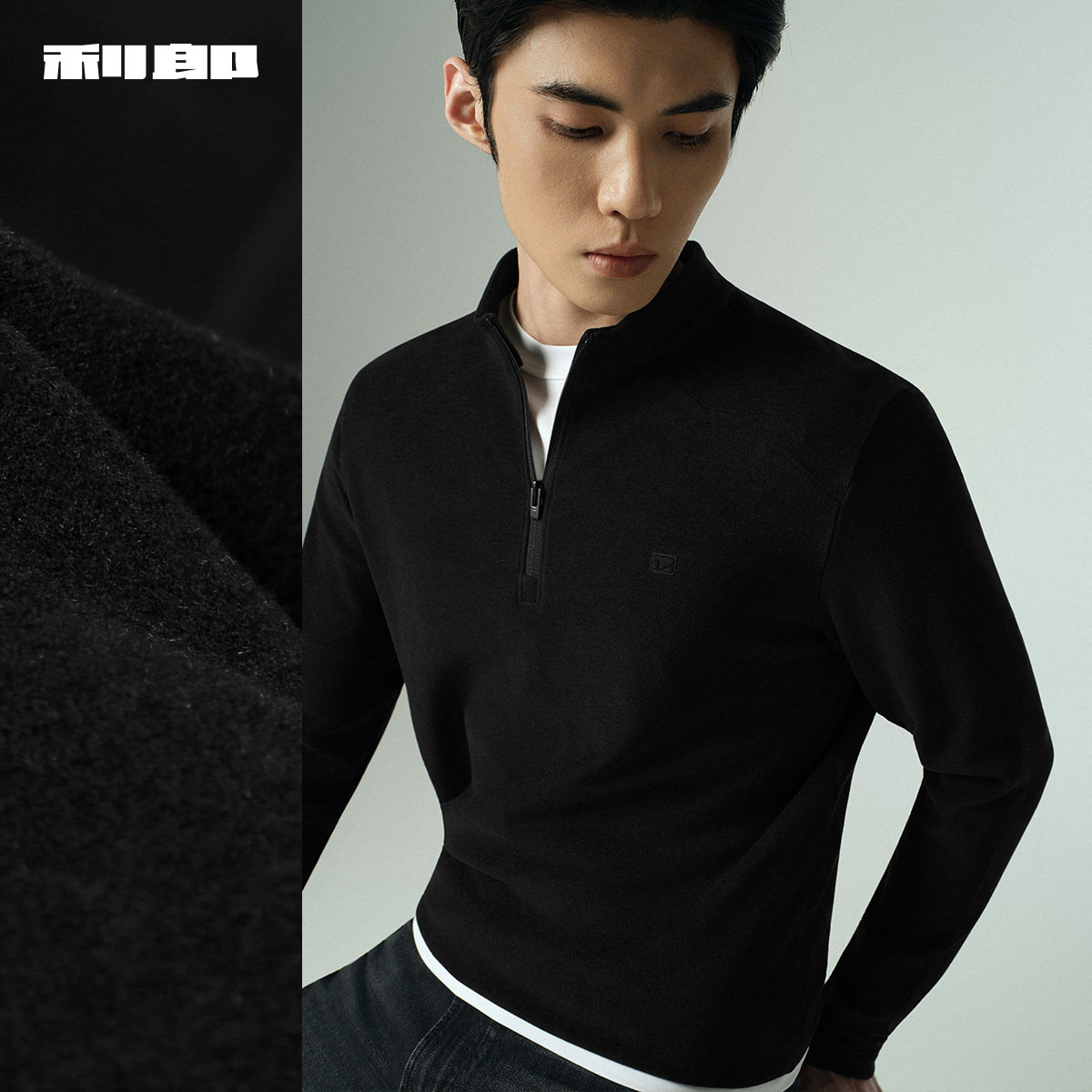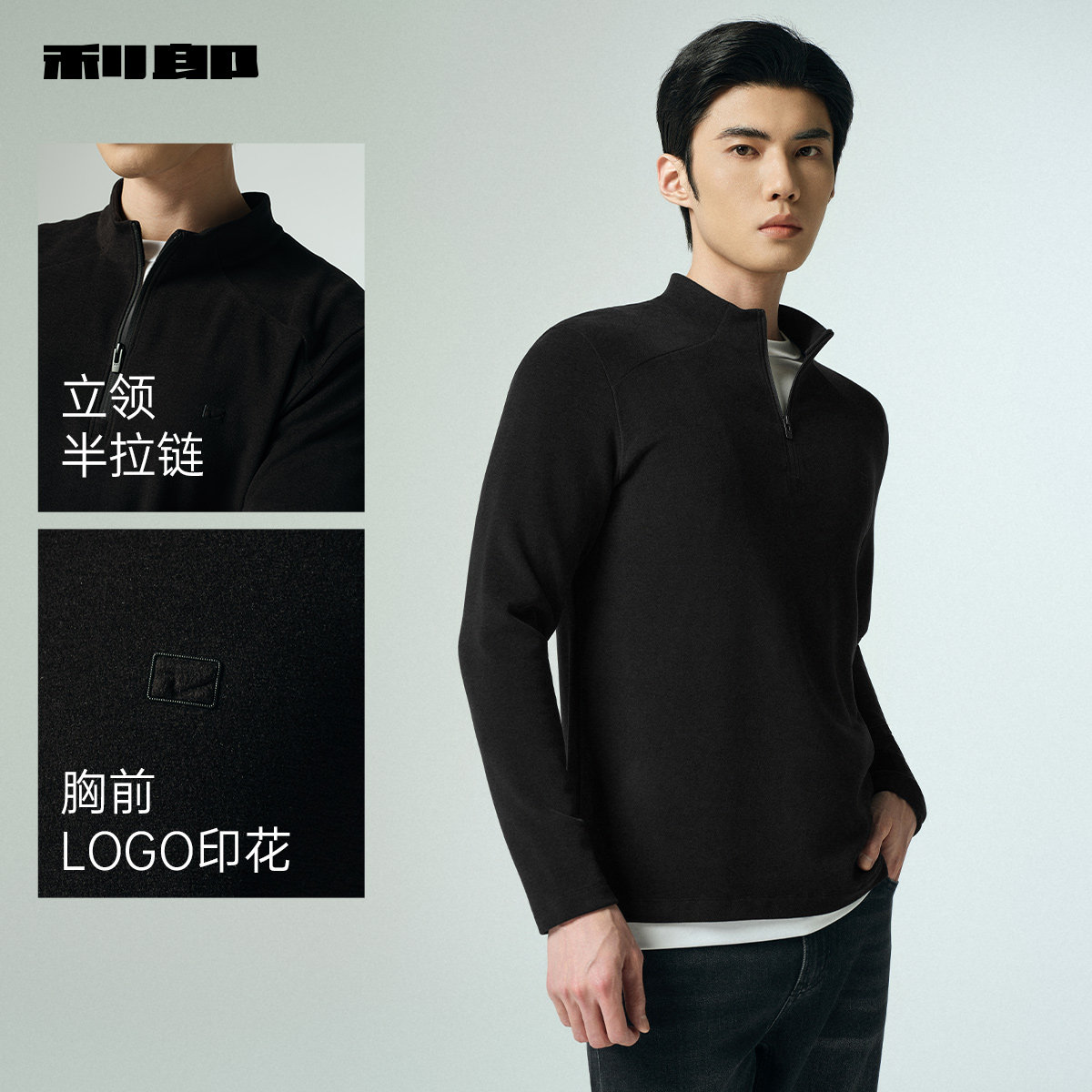 【澳绒】利郎官方 长袖卫衣男士休闲半高拉链领2025秋季新款T恤