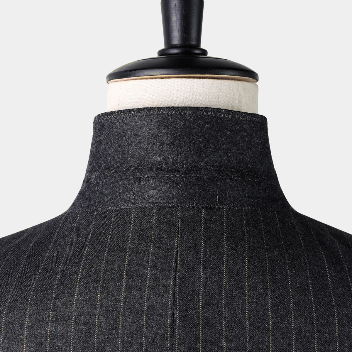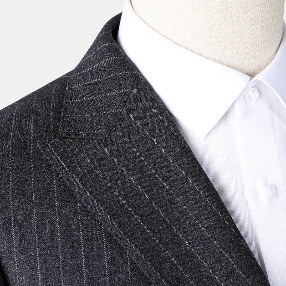 吉约蒙西装男套装双排扣灰色条纹商务新郎结婚礼服高级感西服外套