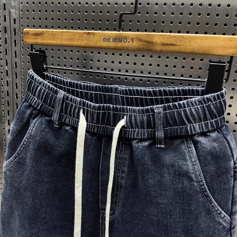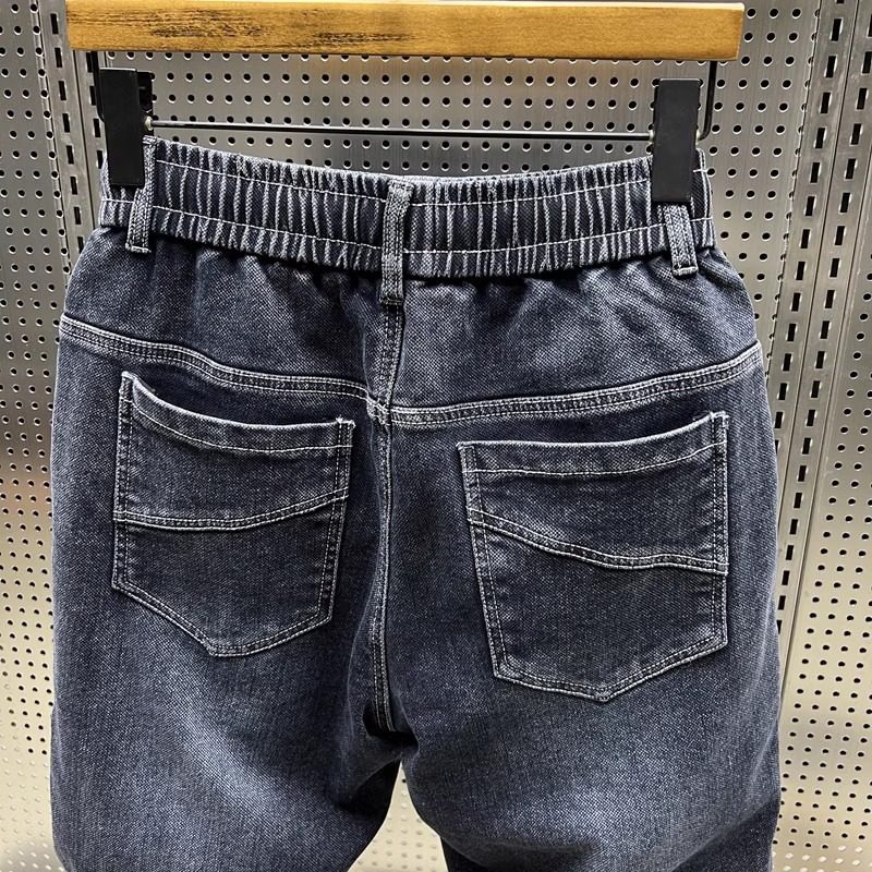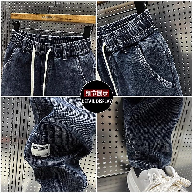 大码300斤秋冬潮牌男士牛仔裤子水洗百搭弹力宽松小脚哈伦九分裤2