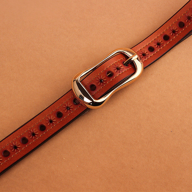 女士皮带牛皮真皮针扣韩国简约百搭镂空装饰腰带细学生牛仔裤潮流
