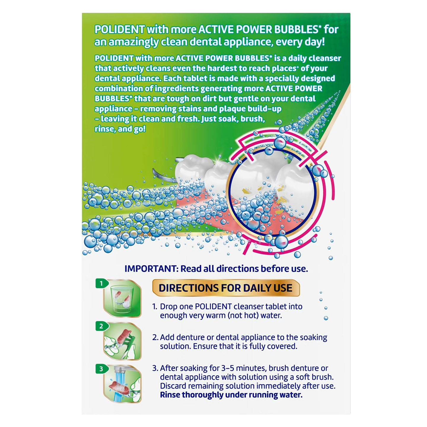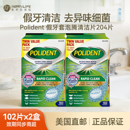 美国直邮 Polident保丽净假牙保持器隐形牙套清洁泡腾片204片进口
