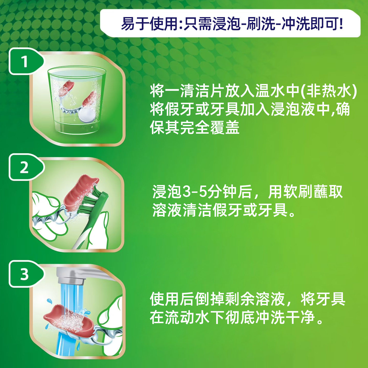 保丽净假牙牙套清洁片204片