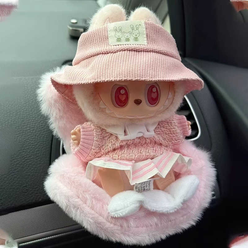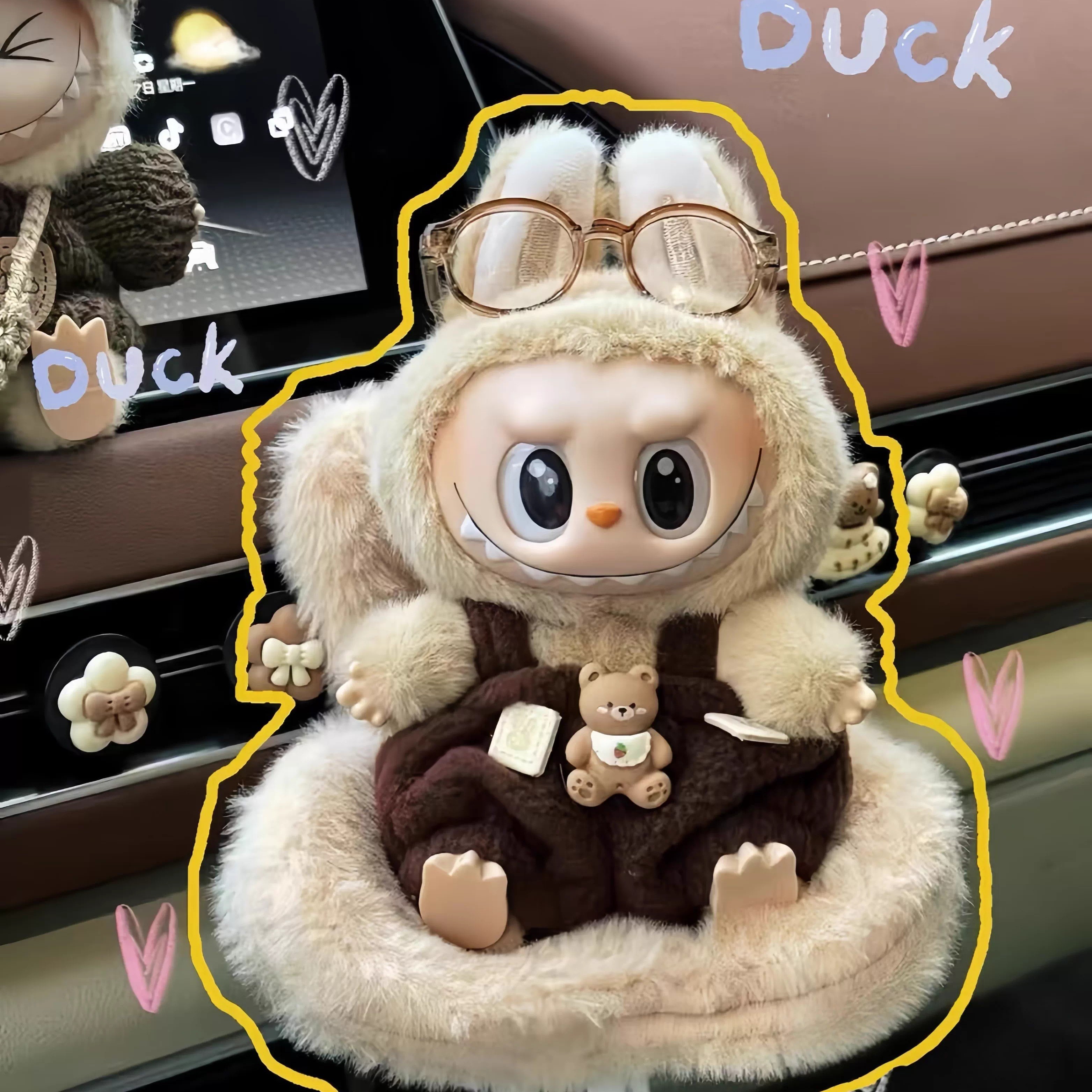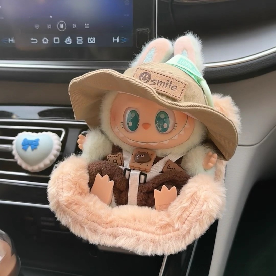 适用拉布布安全座椅labubu泡泡玛特摆件出风口毛绒娃娃车载座椅
