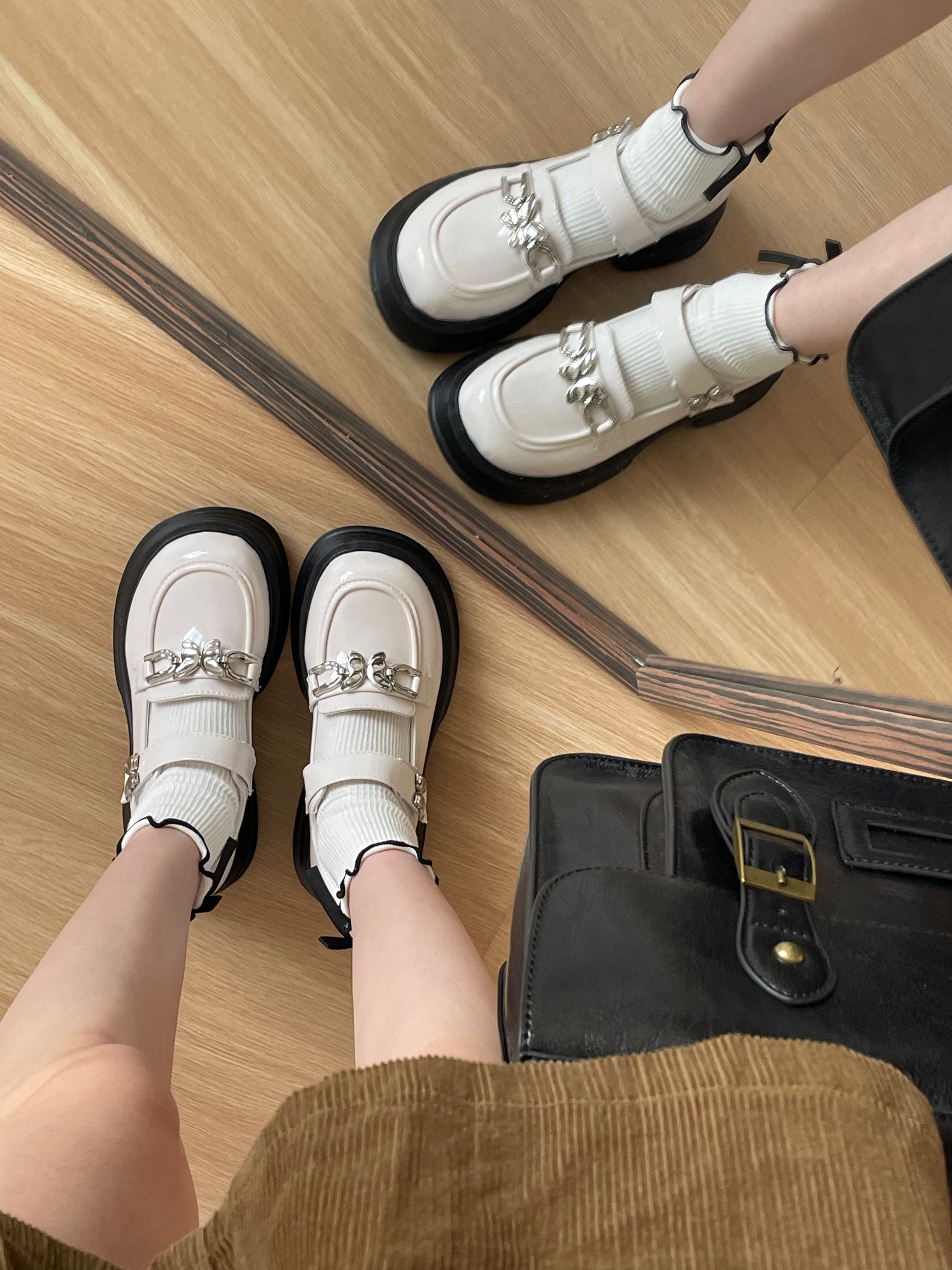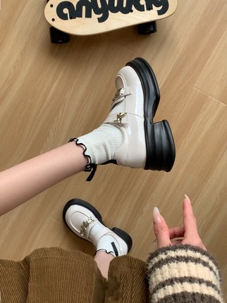 白色厚底松糕增高小皮鞋女2025新款秋季复古英伦风圆头玛丽珍单鞋