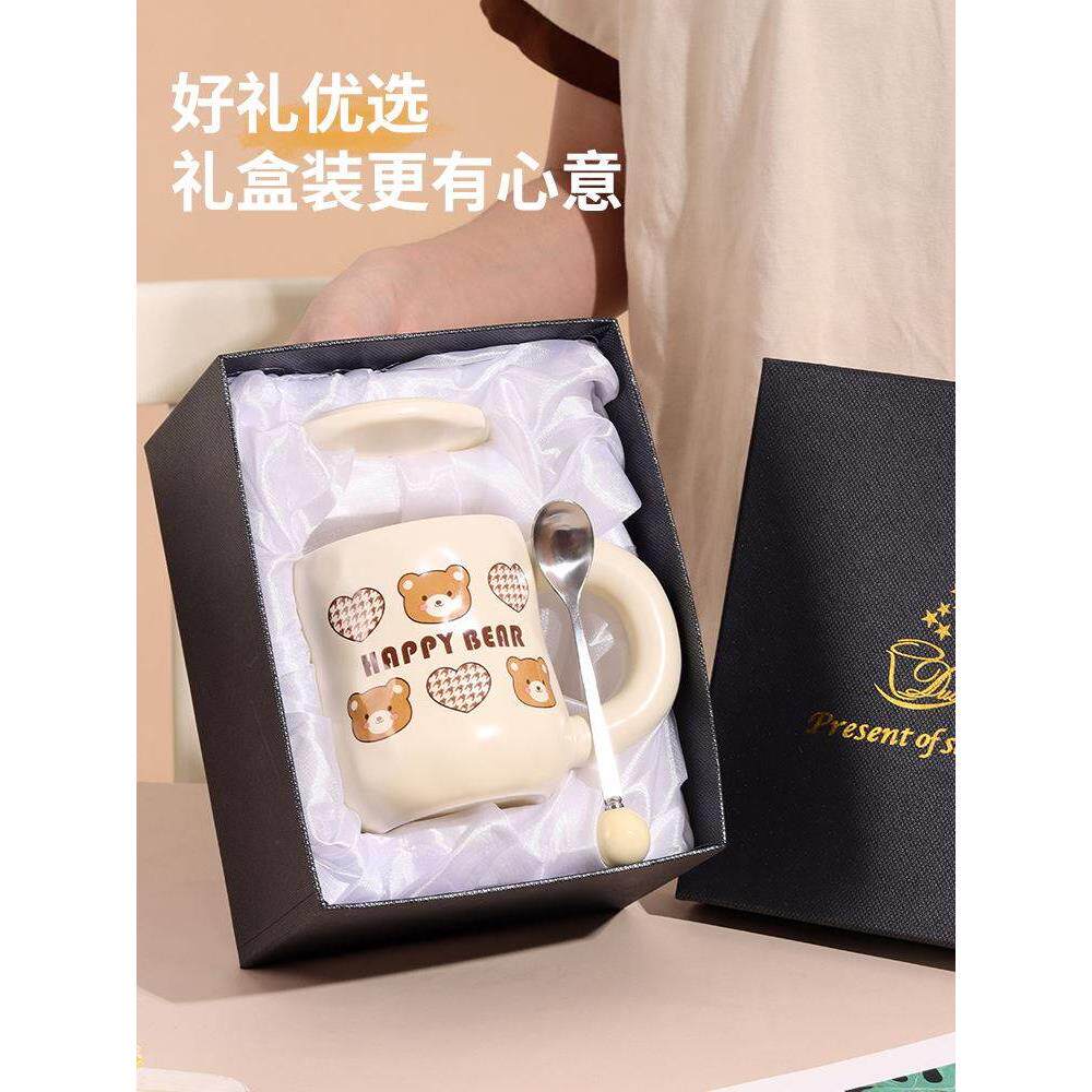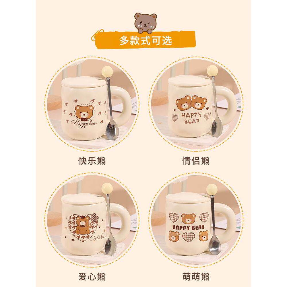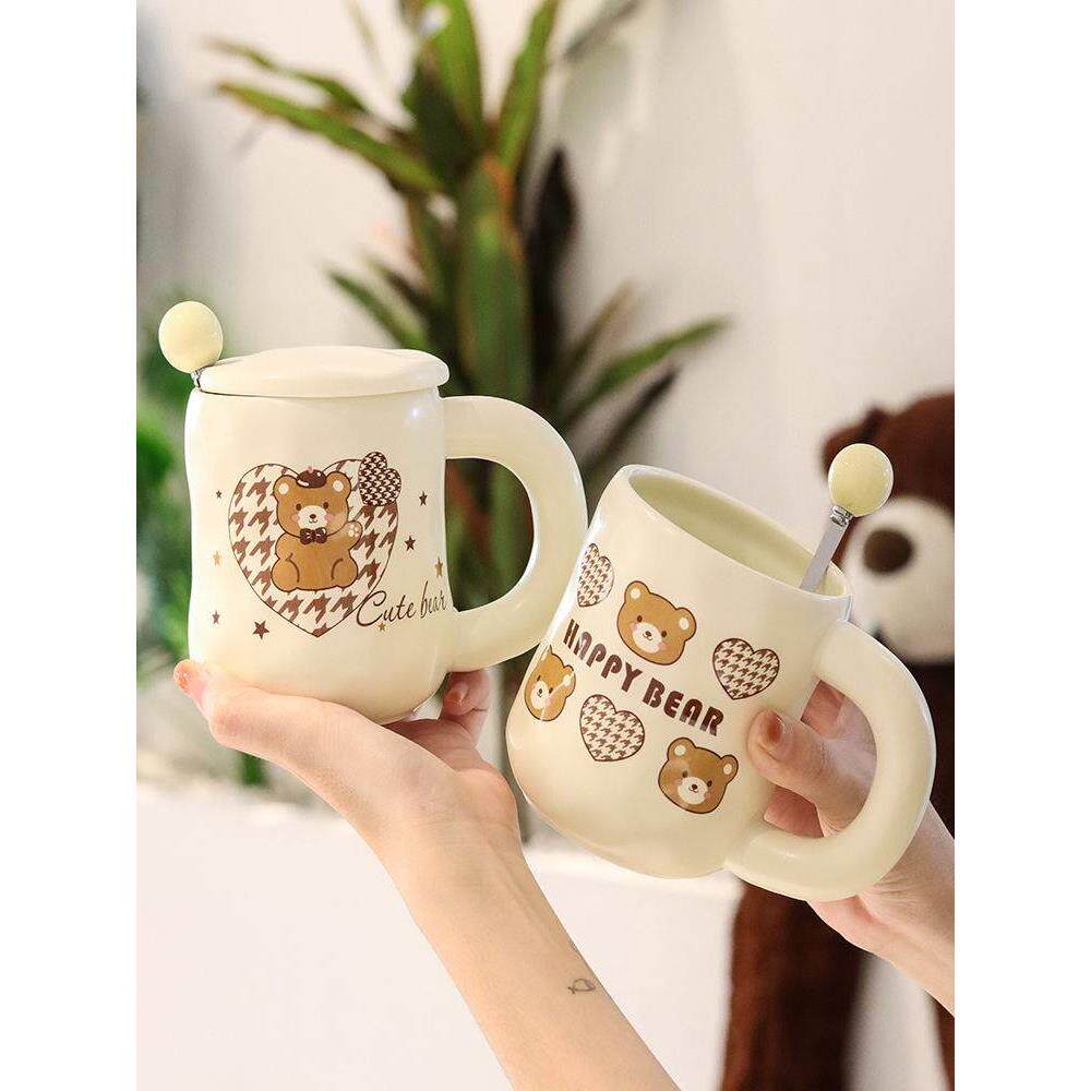 可爱卡通小熊杯子女生日礼物高颜值情侣水杯陶瓷马克杯带盖咖啡杯