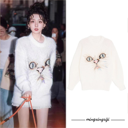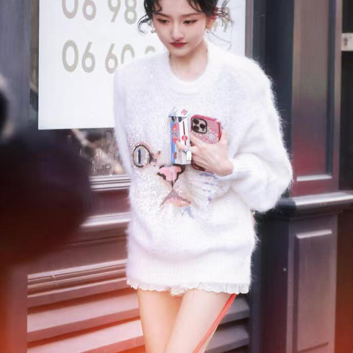 明星日记宋祖儿同款猫咪马海毛套衫毛衣2025秋冬网红吸睛针织珠片