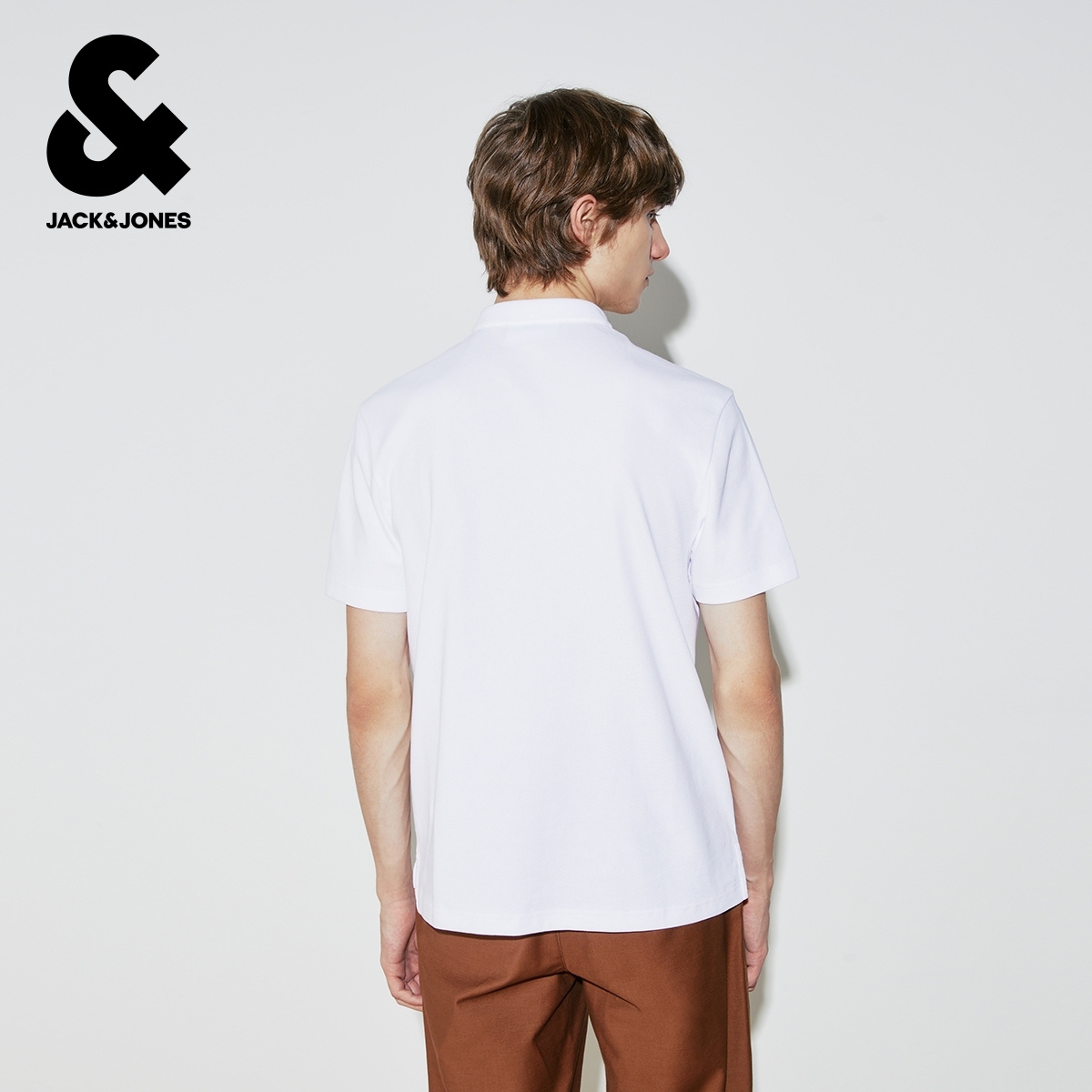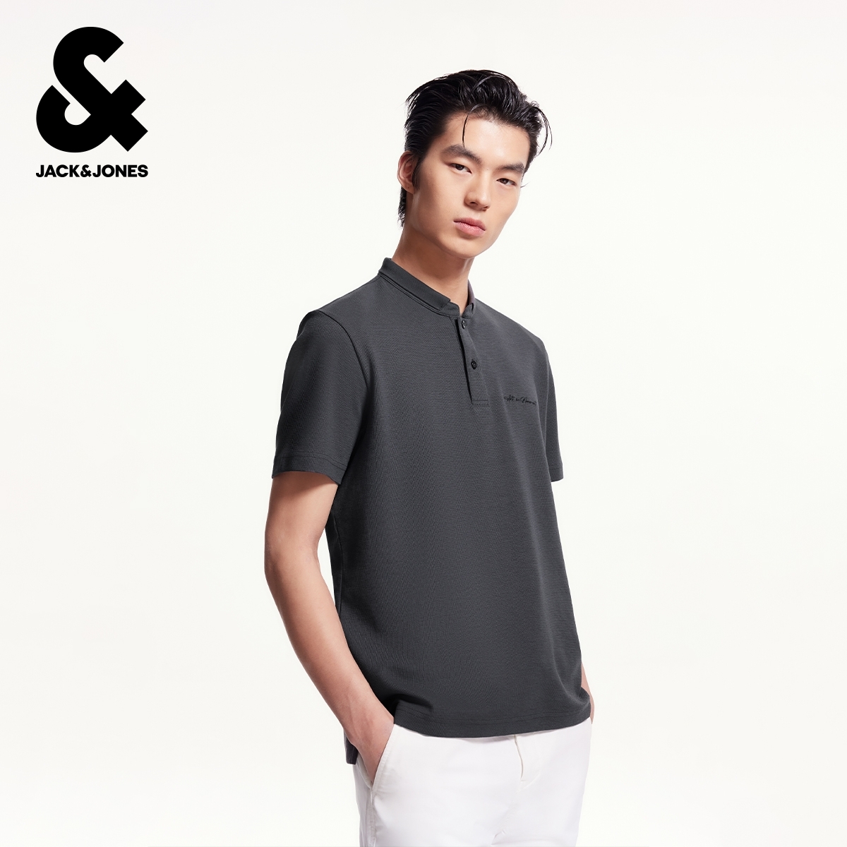 杰克琼斯秋季男装POLO衫凉感舒适百搭休闲字母刺绣款短袖上衣
