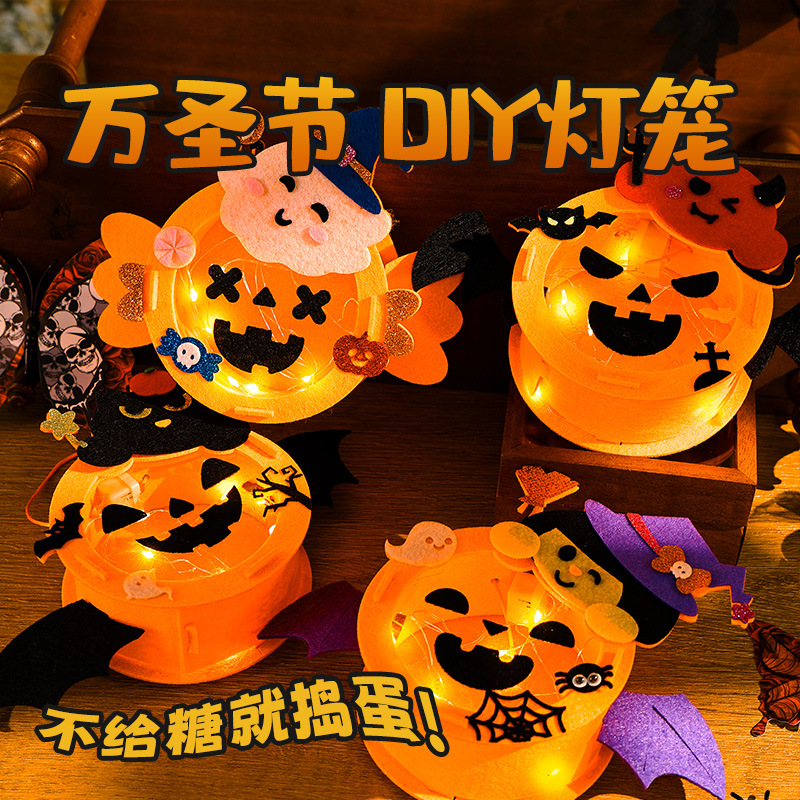 万圣节新款儿童手提卡通南瓜灯笼搞怪幼儿园手工制作diy材料包礼