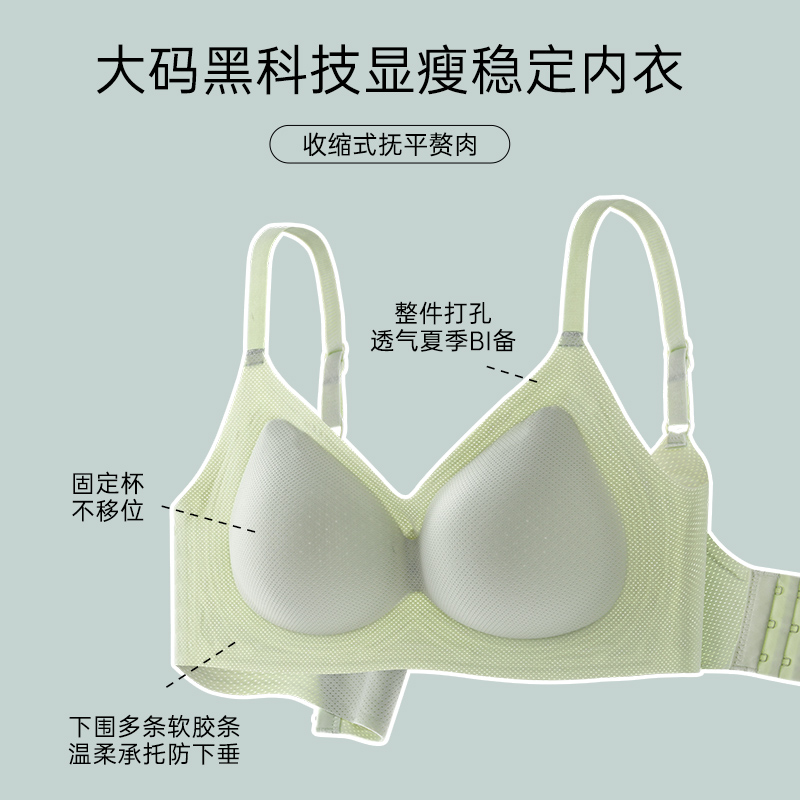 大码内衣大胸显小收副乳防下垂上托全罩杯夏季薄款无痕文胸罩女士