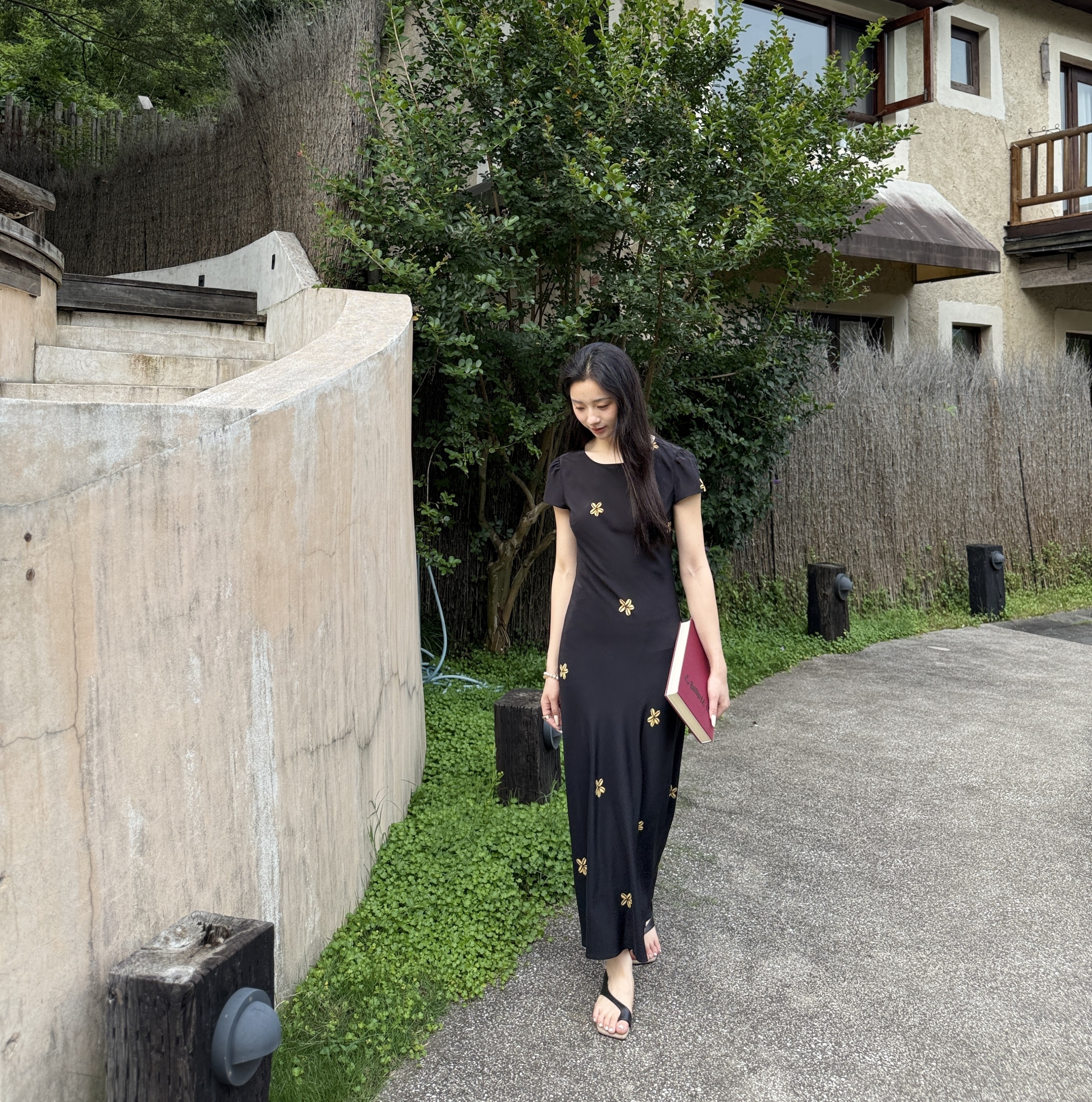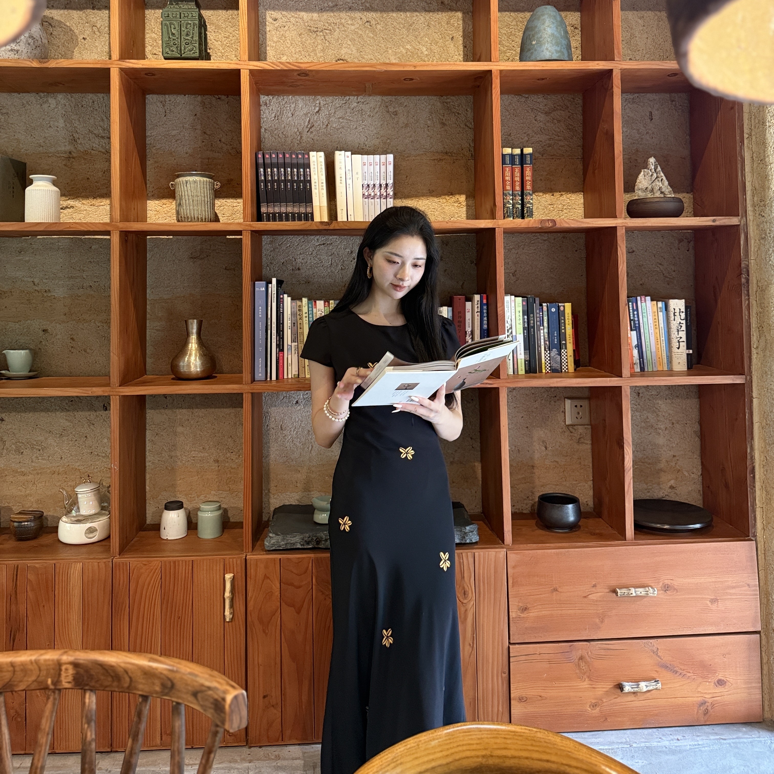 云梦泽丨100桑蚕丝丨45°斜裁丨16姆米真丝双绉飞袖连衣裙-MY6088