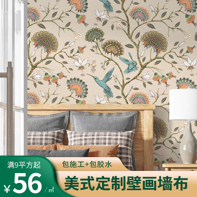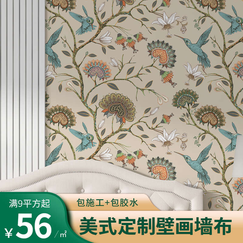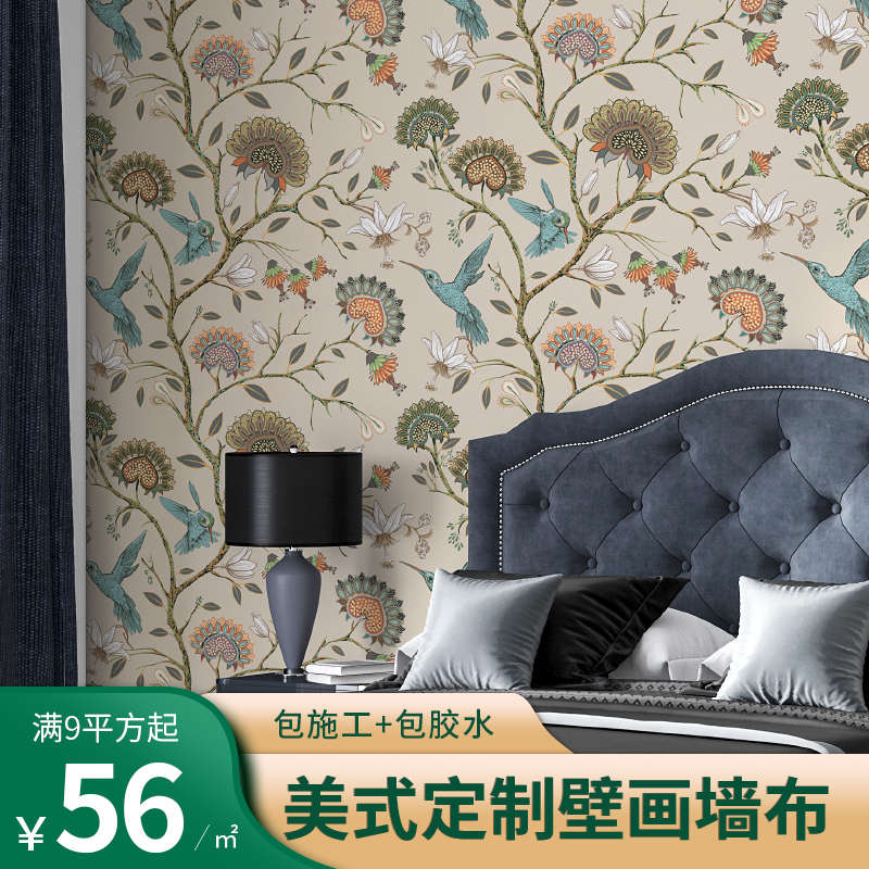 花鸟美式壁纸卧室墙纸2021年新款主卧电视背景墙壁画定制客厅墙布