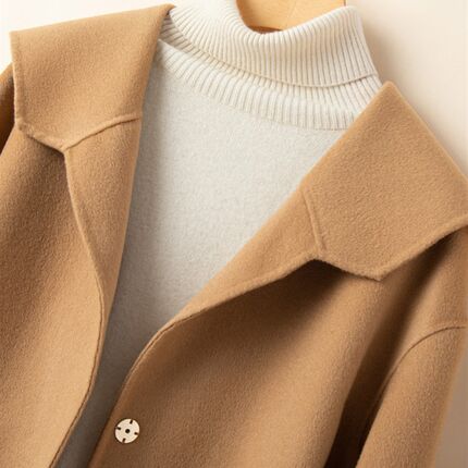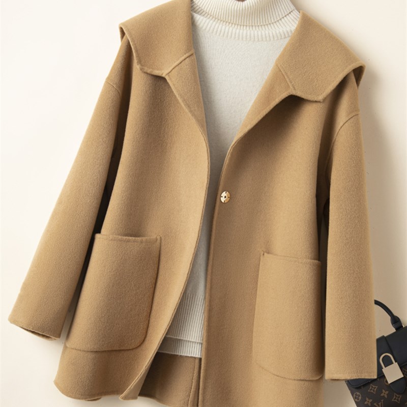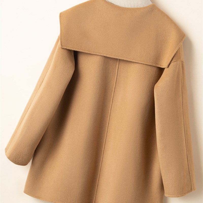 双面羊绒大衣女中长款秋冬2024新款宽松小个子海军领纯羊毛呢外套