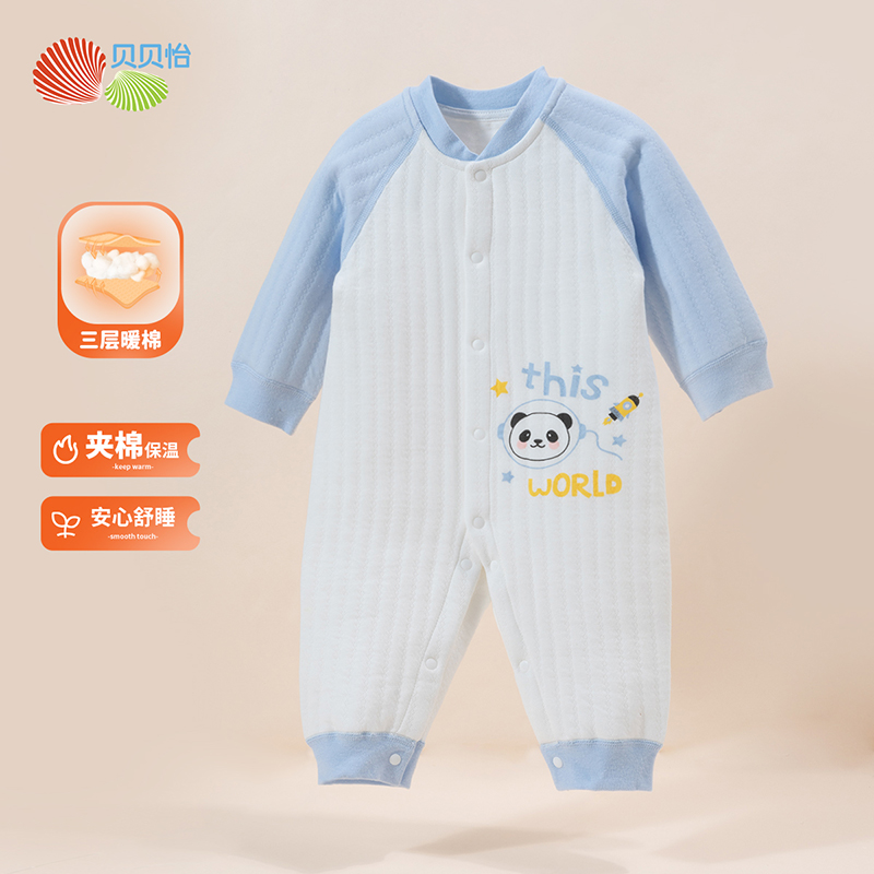 贝贝怡婴儿连体衣秋冬装保暖哈衣新生儿衣服男女宝宝加厚套装爬服