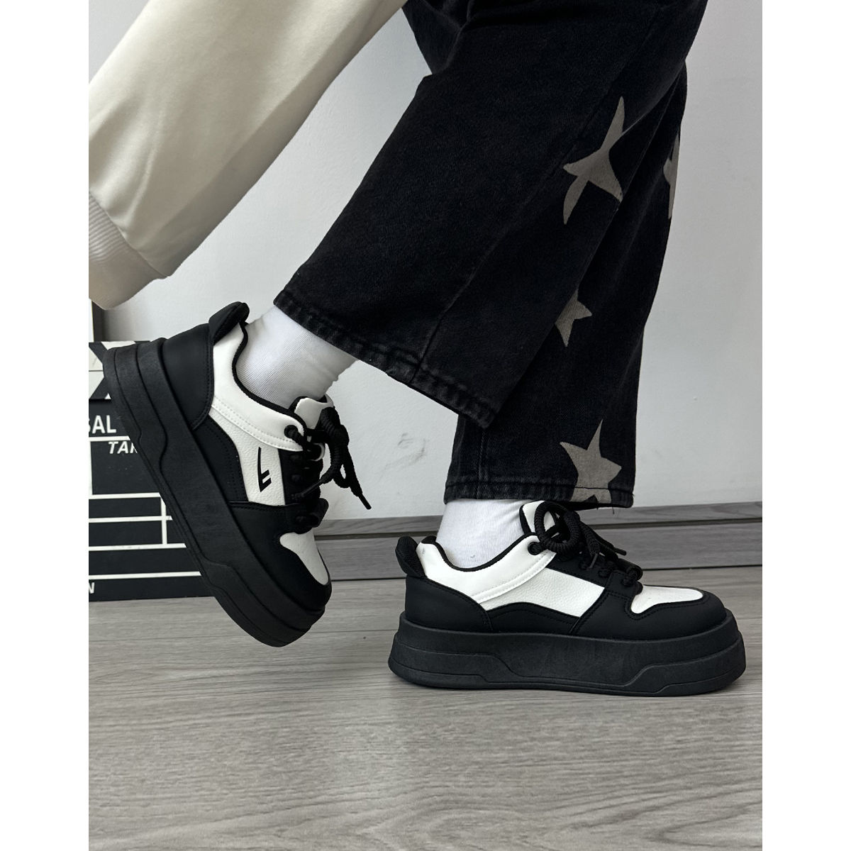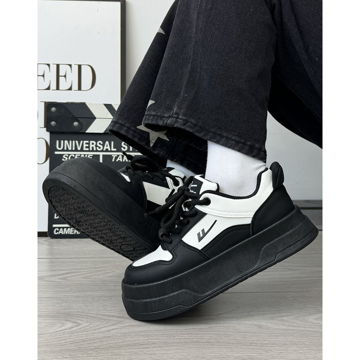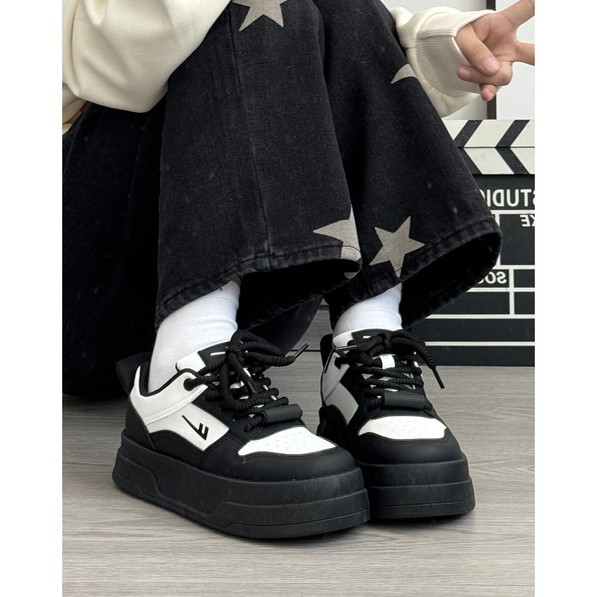 回力女鞋黑白熊猫2024秋冬新款爆款百搭超轻废土风厚底增高板鞋子