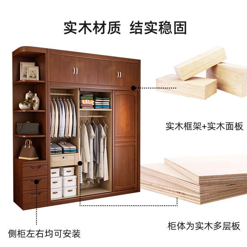 柜实木推拉量门家用组装大容整体衣衣柜橱物收纳柜衣子中式卧室家