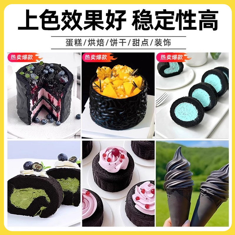 竹炭粉烘培食用植物炭黑可蛋糕黑色色素竹碳粉墨鱼汁粉色粉FC法采