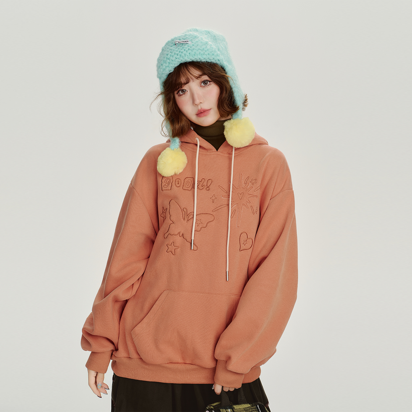 Girlyhalo美式复古刺绣连帽长袖卫衣女秋冬新款宽松慵懒上衣