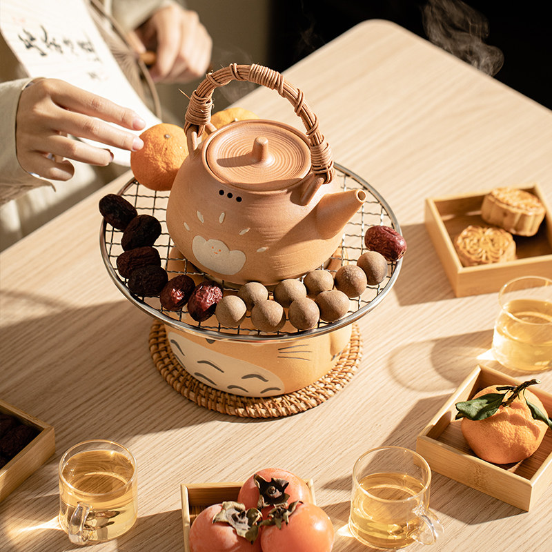 可爱卡通龙猫炭炉围炉煮茶提梁壶