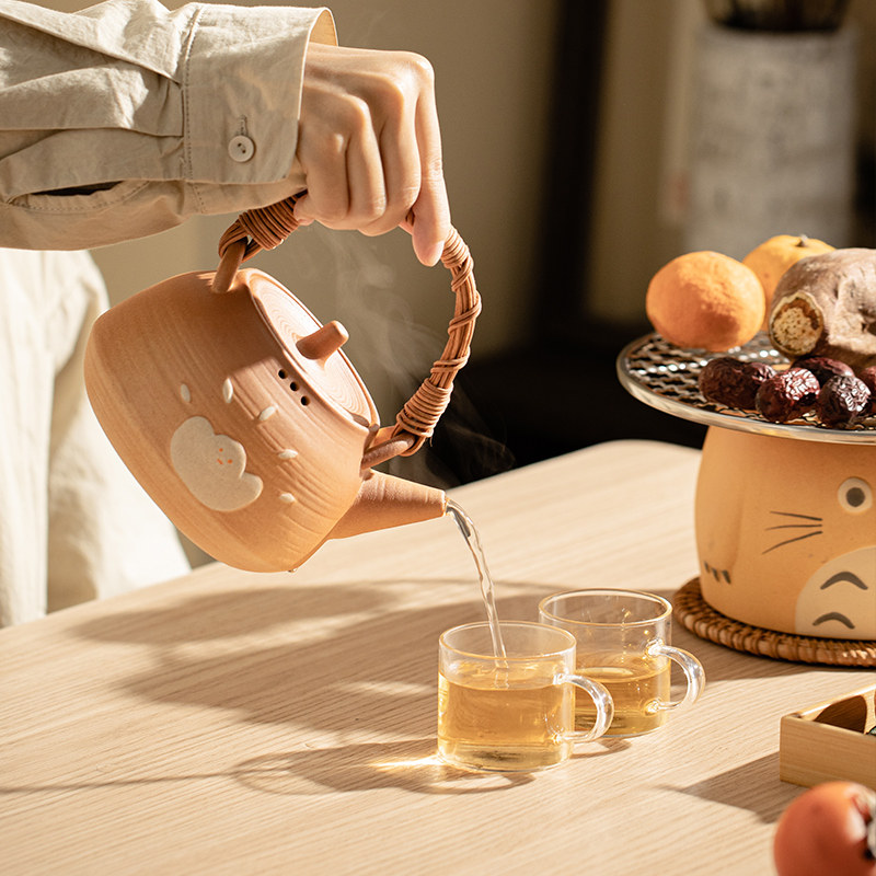 可爱卡通围炉煮茶龙猫炭炉可干烧明火壶防烫提梁壶家用室内煮茶壶