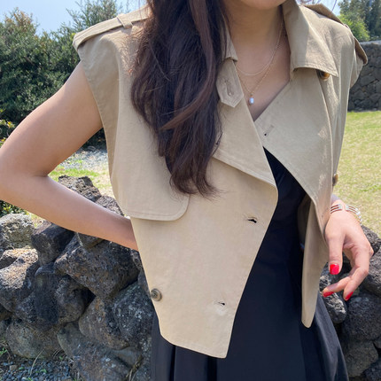 韩国chic夏季复古百搭纯色系扣设计感小众宽松短款风衣马甲外套女