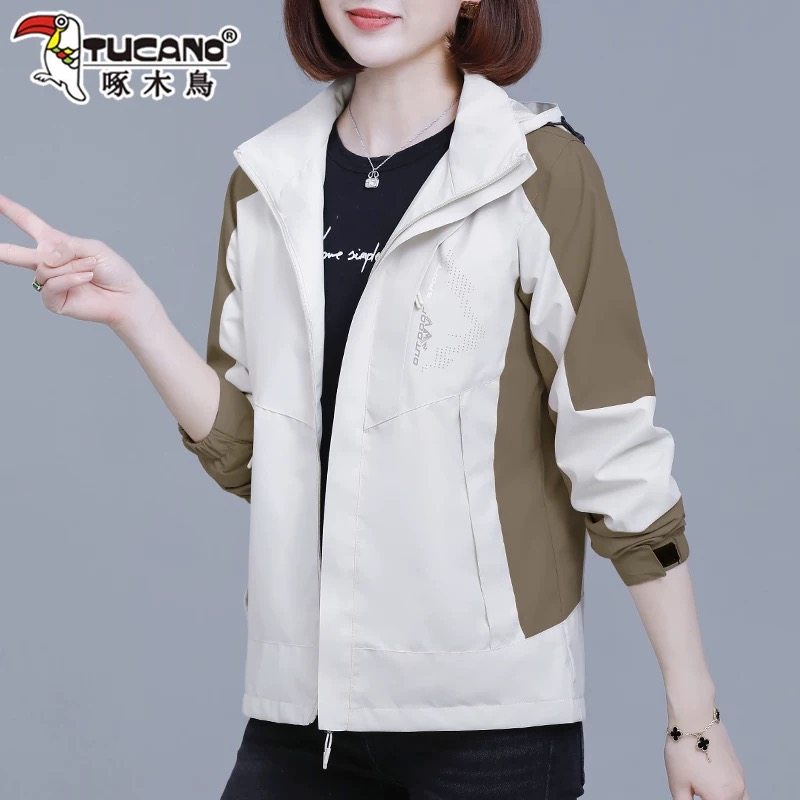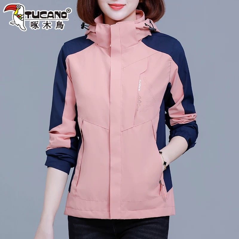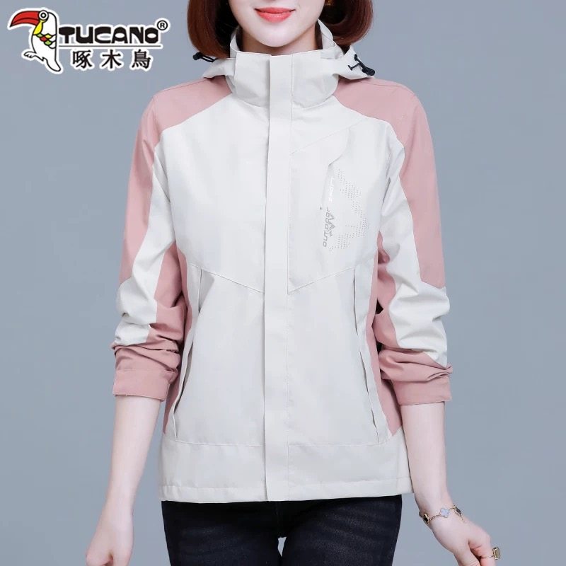 啄木鸟冲锋衣外套女春秋薄款2025新款女士户外休闲服短款夹克上衣