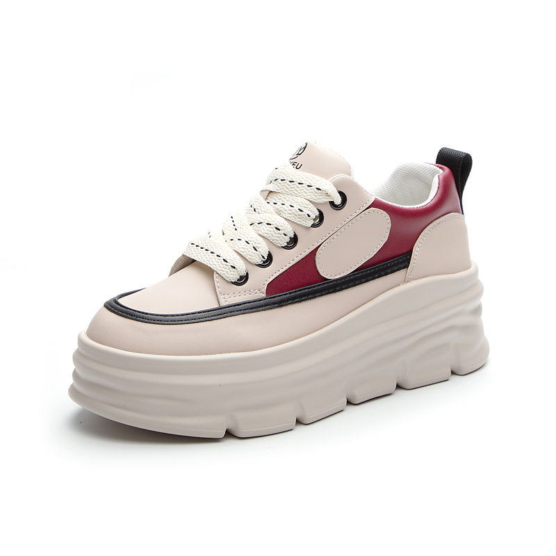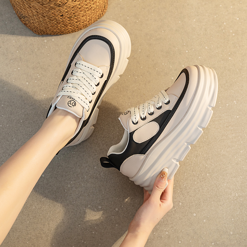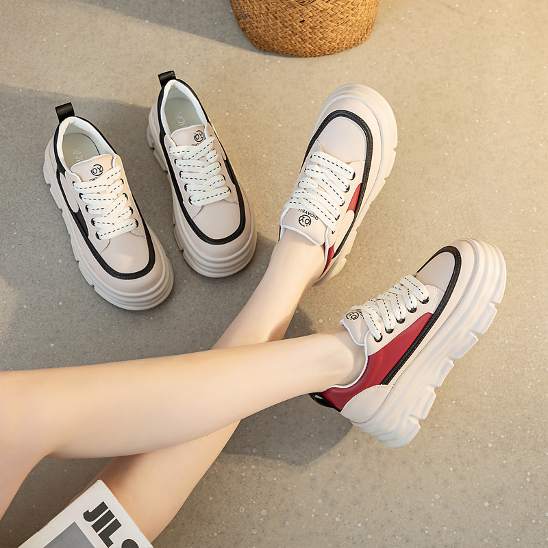 爆款真皮内增高女鞋春夏新款拼色松糕鞋厚底运动小白鞋懒人休闲鞋