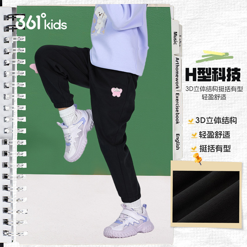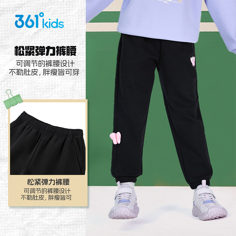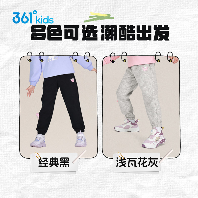 361°童装女童针织运动裤儿童长裤2026春新款小童亲肤轻盈裤子