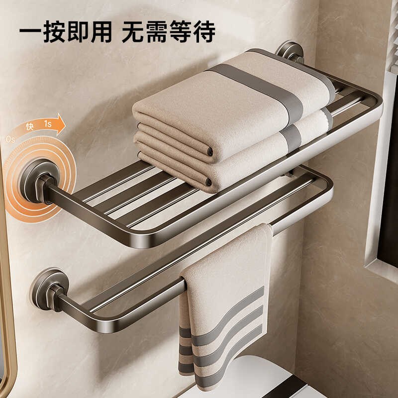 日本MUJIX吸盘毛巾架子卫生间浴巾架浴室置物架免打孔可折叠壁挂
