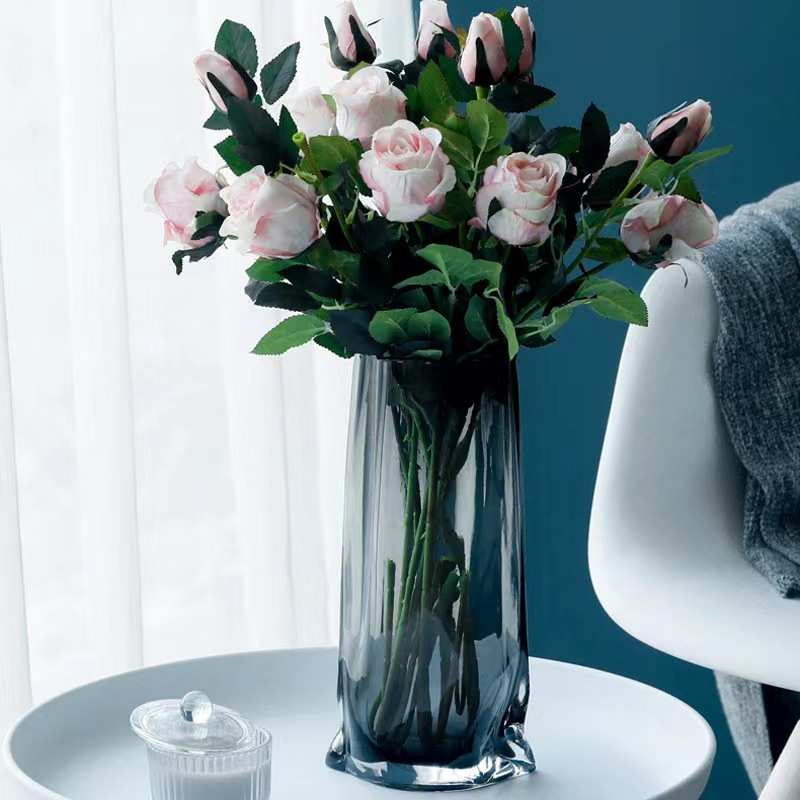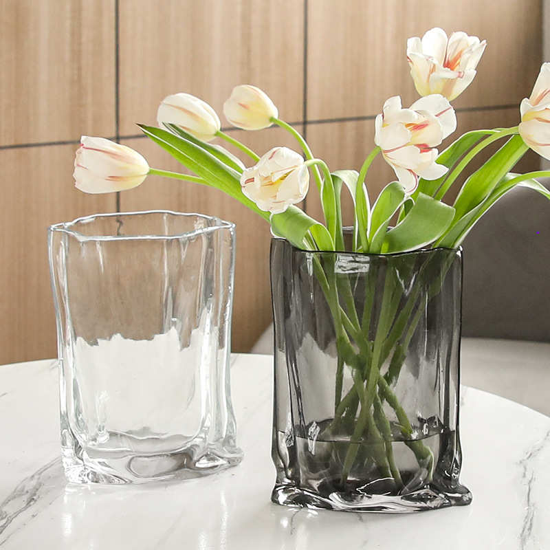 新款创意玻璃花瓶褶皱竖纹现代不规则花瓶客厅装饰花器水培装饰