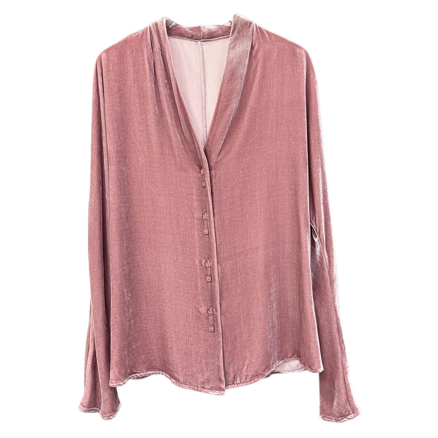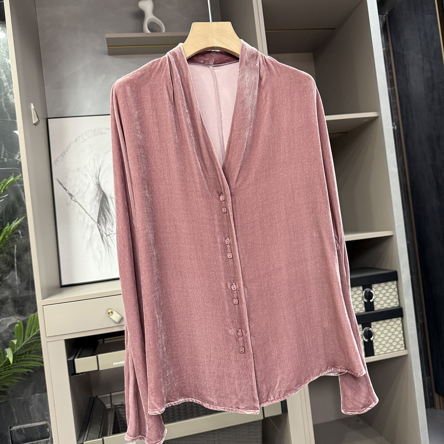 设计师款!优雅气质!真丝丝绒V领长袖衬衫上衣女 250830001~ZY