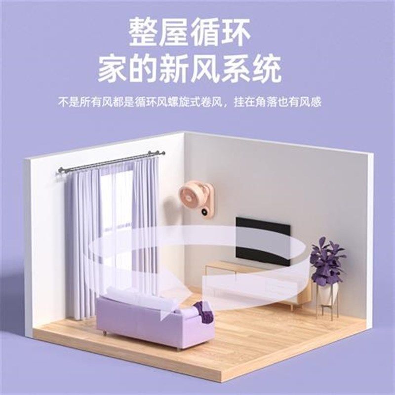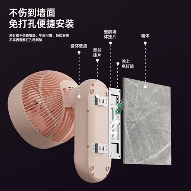 壁挂空气循环扇挂壁式免打孔家用厨房凉霸台壁两用扇卫生间电风扇