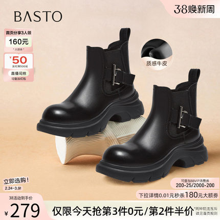 百思图冬季新款商场同款厚底切尔西靴时尚潮流女短靴H2881DD5