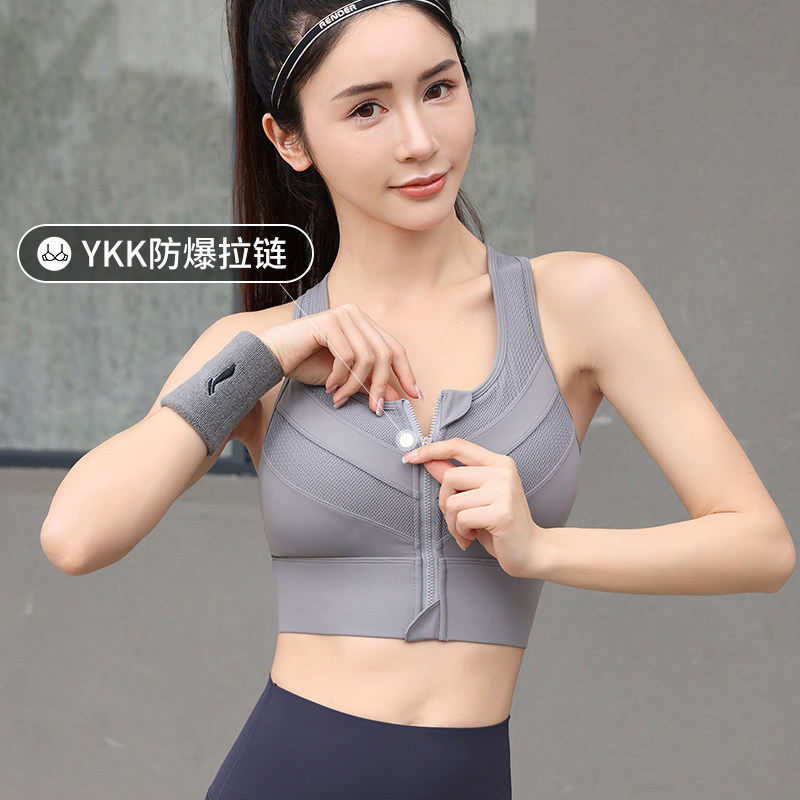 乐炼大码运动内衣女防震跑步前拉链高强度美背骑行一体式定型文胸