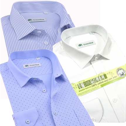 春秋新品海螺衬衫蓝条纹男长袖纯棉衬衣白格条纹绿叶商务正装免烫