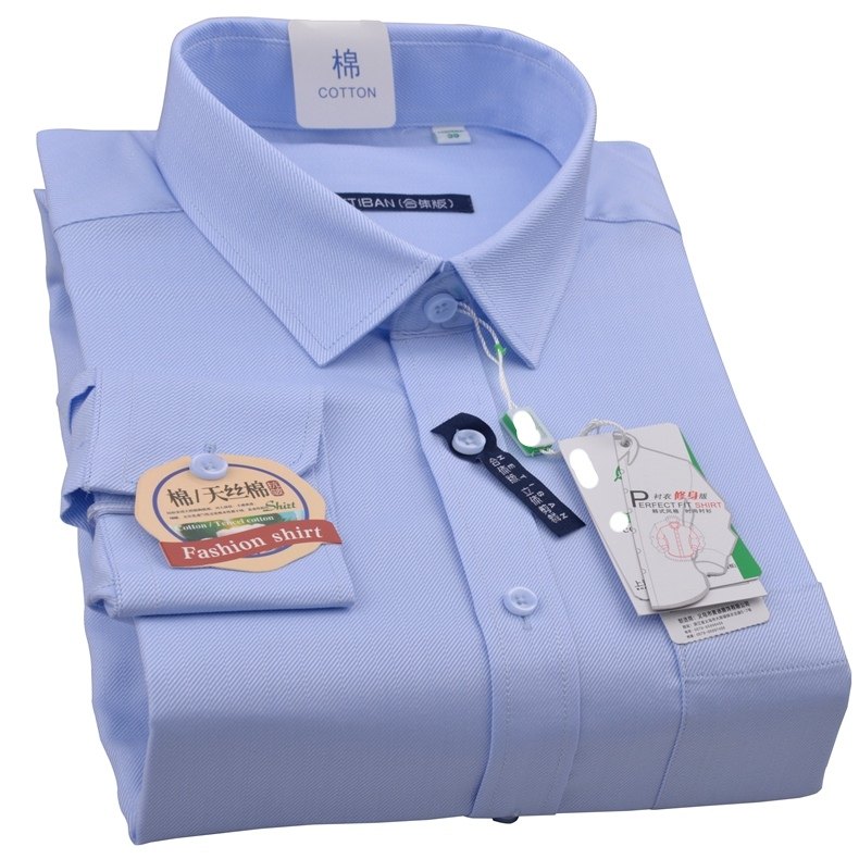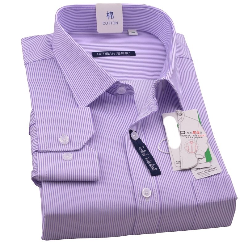 免烫白蓝条纯棉衬衫海螺商务长袖