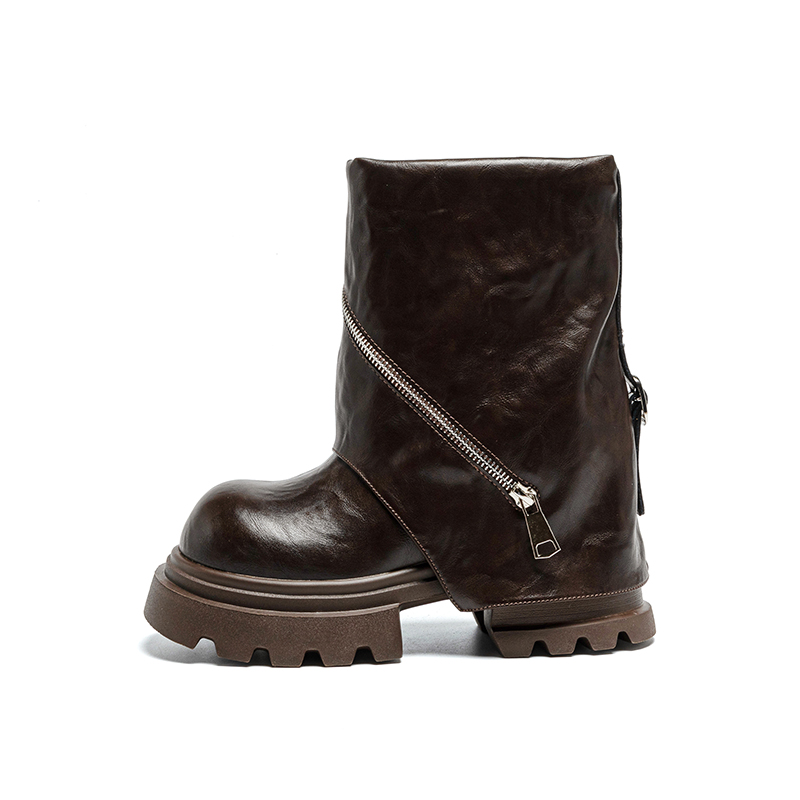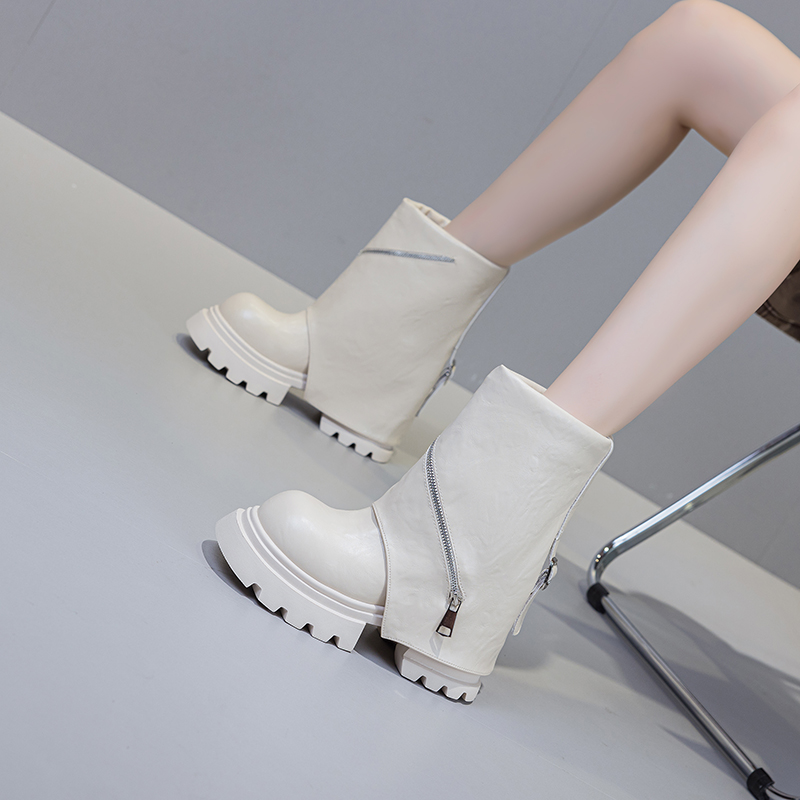 12cm松糕厚底短靴震地王女鞋2025新款裤管靴时尚单鞋内增高马丁靴
