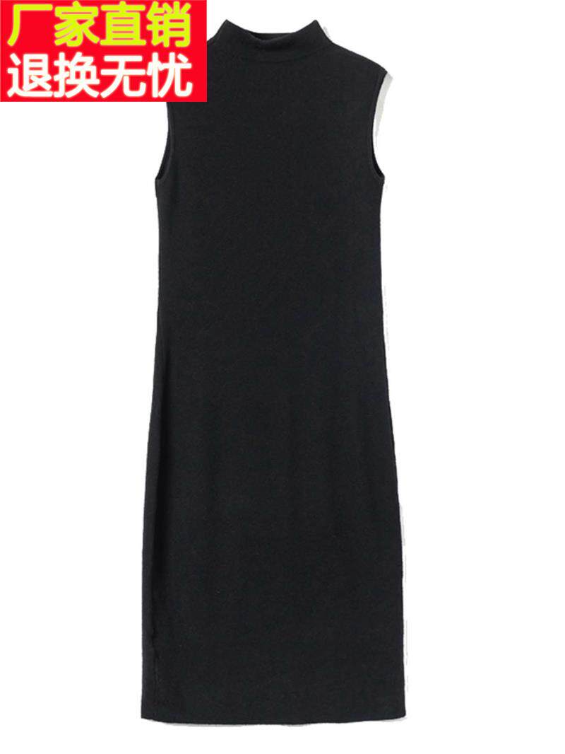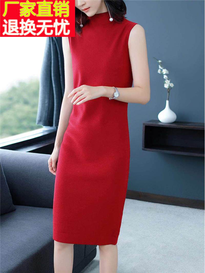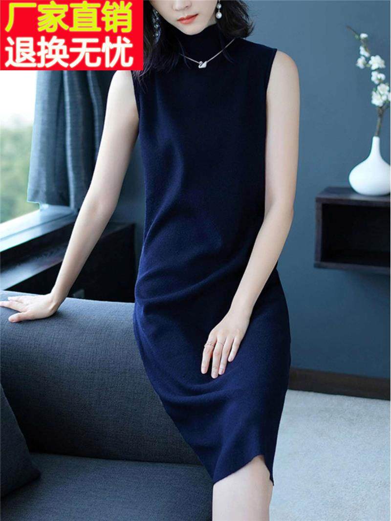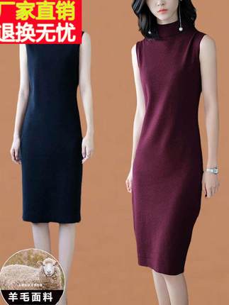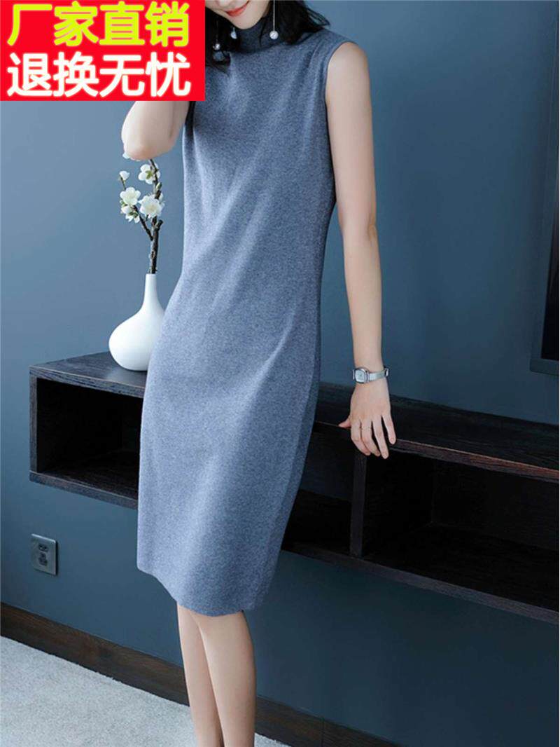 半高领针织无袖吊带连衣裙女羊毛衫内搭春秋显瘦打底背心毛衣长裙
