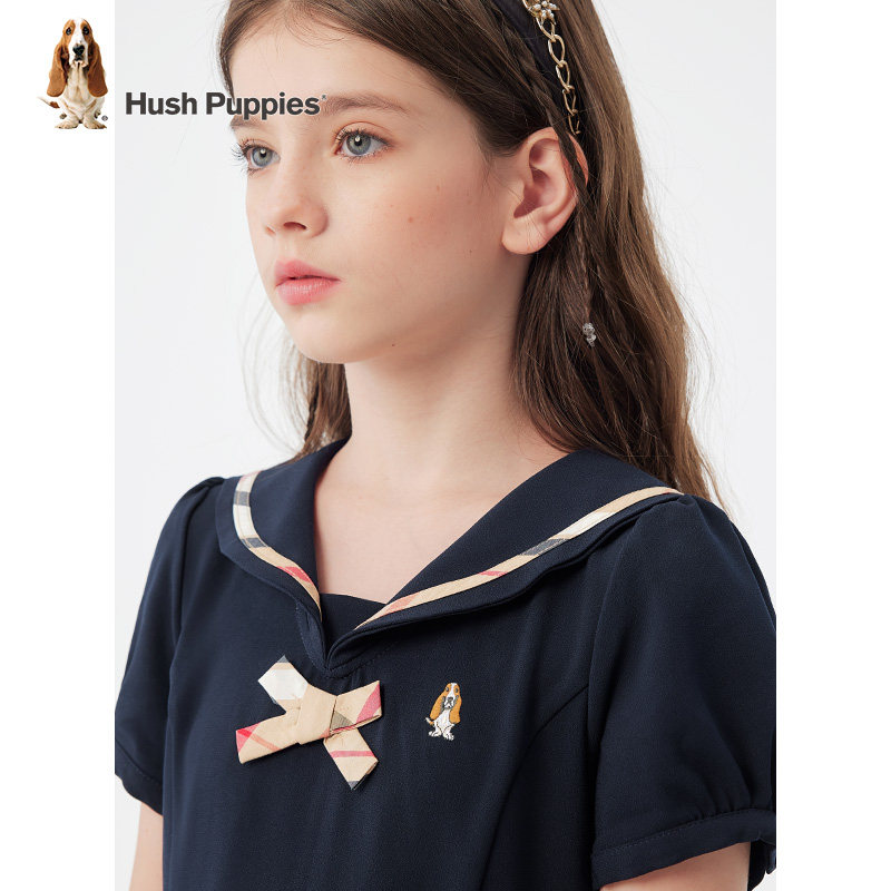 暇步士童装女童连衣裙夏季新款中大童学院甜美裙子儿童透气半袖裙