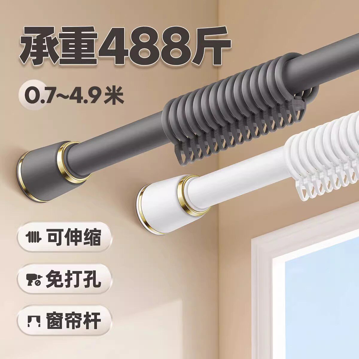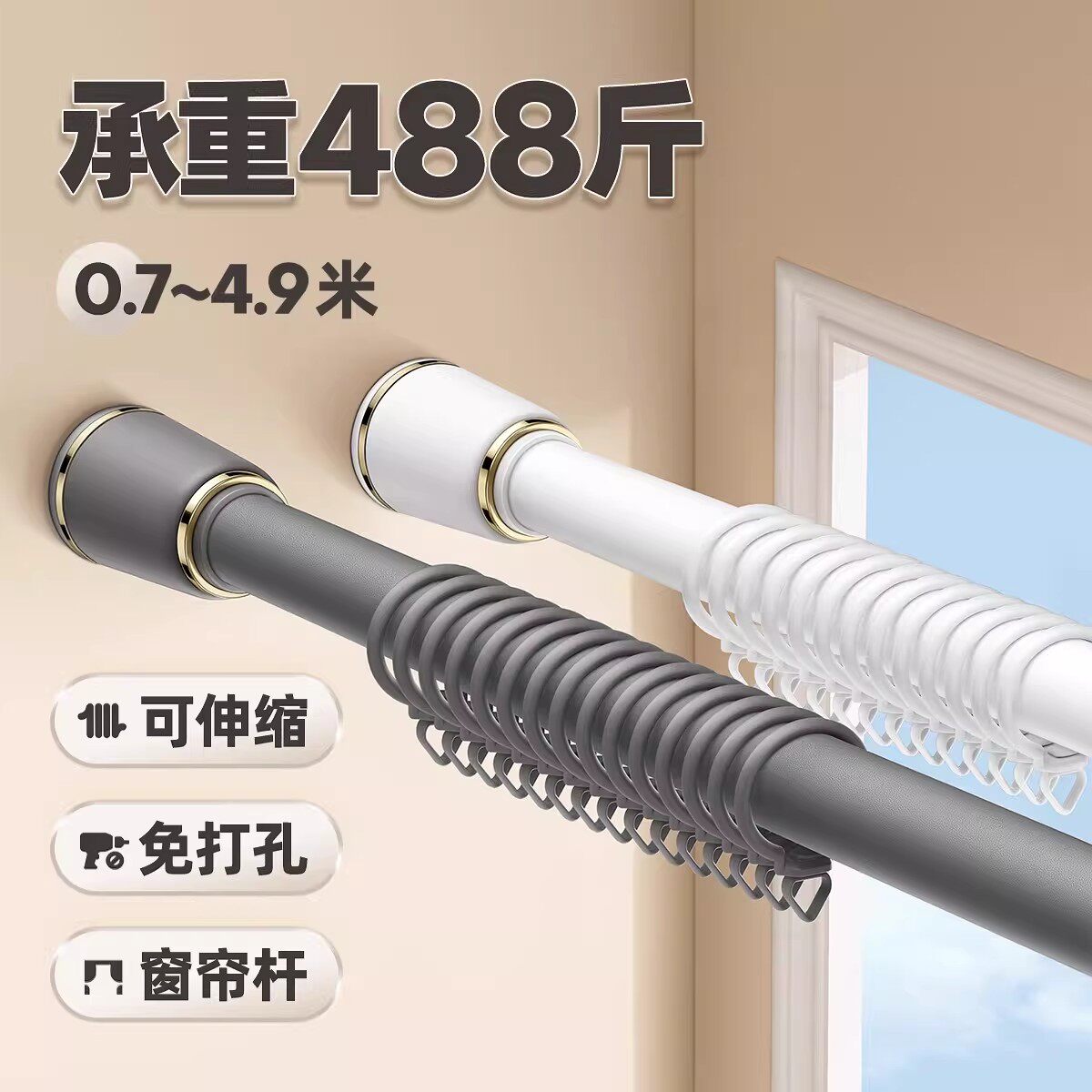 德国免打孔伸缩杆安装窗帘杆子单杆窗帘支架升缩罗马杆晾衣杆免钉