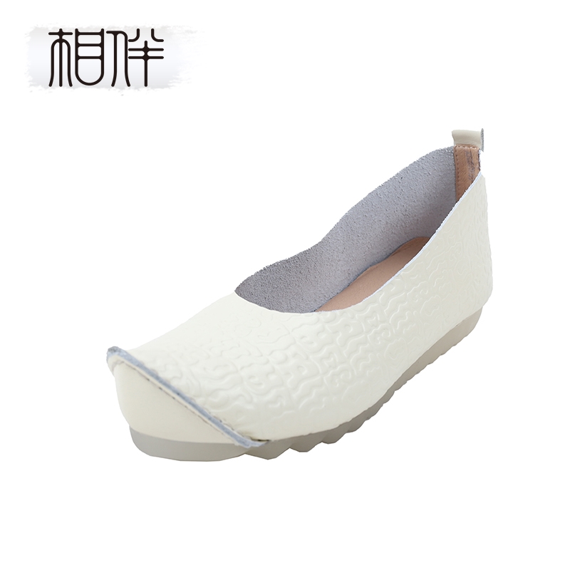 相伴平底浅口民族风翘头乐福鞋