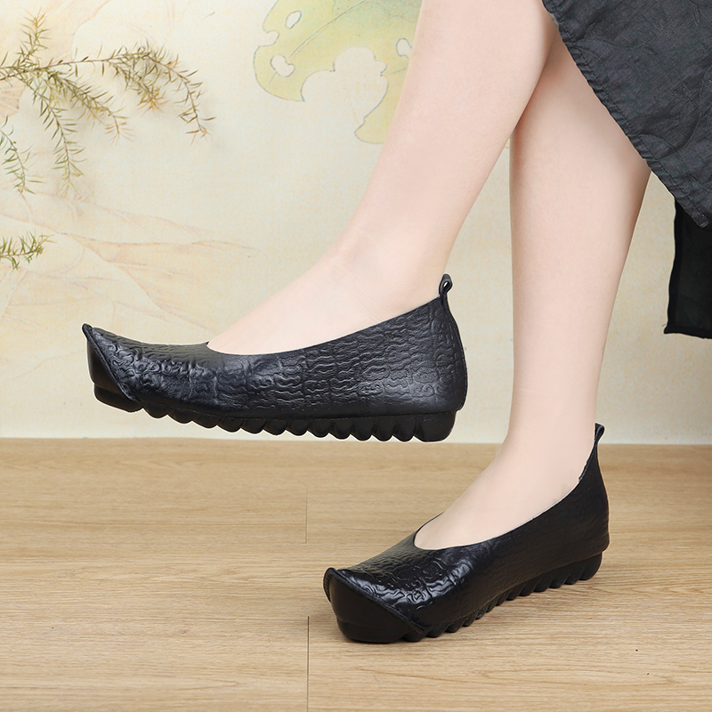 相伴真皮汉服女鞋浅口单鞋女新款翘头平底软底复古民族风手工鞋子