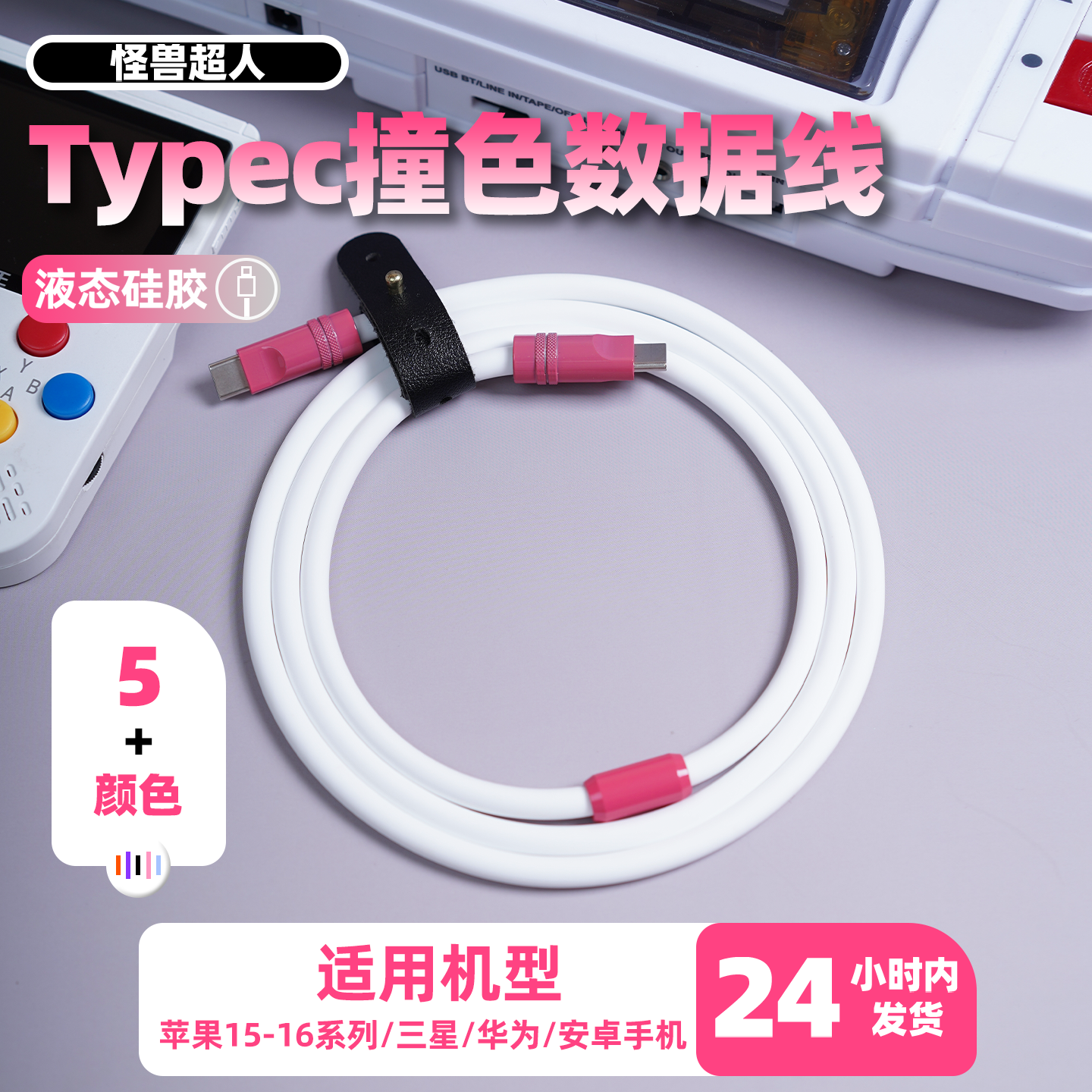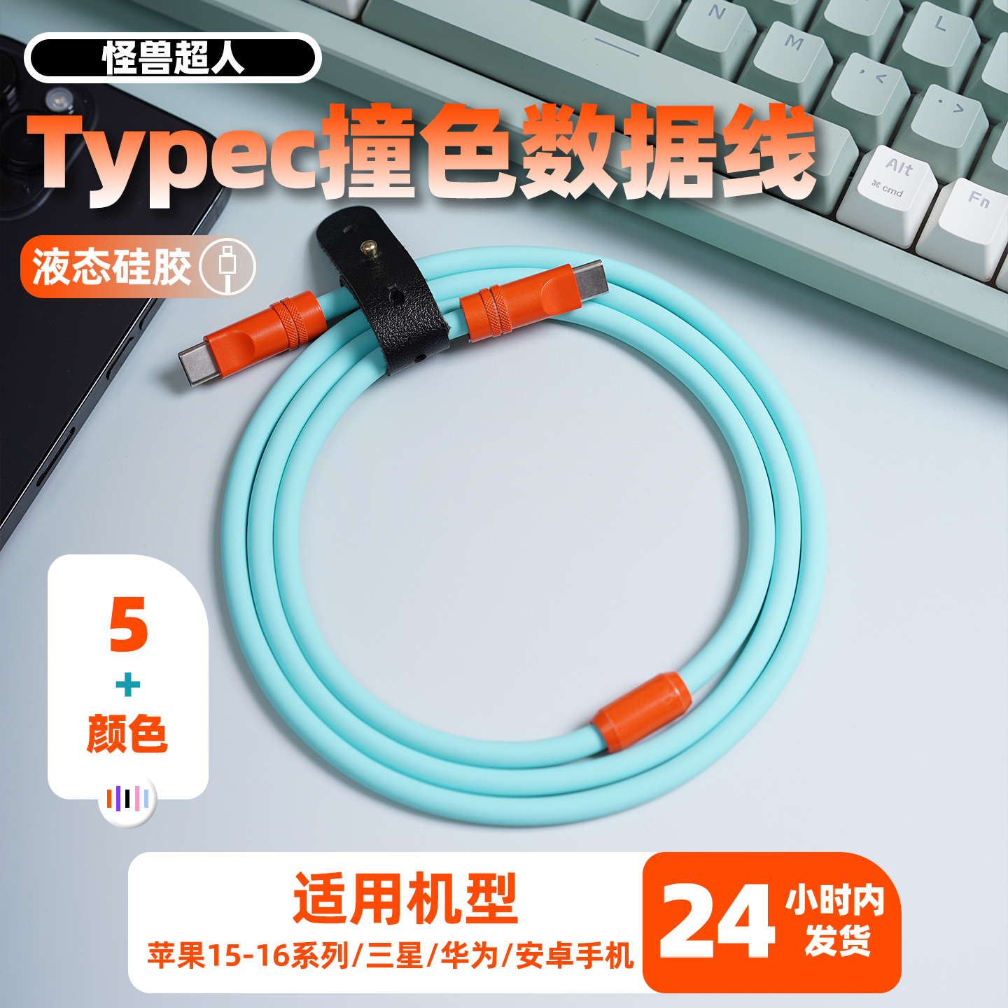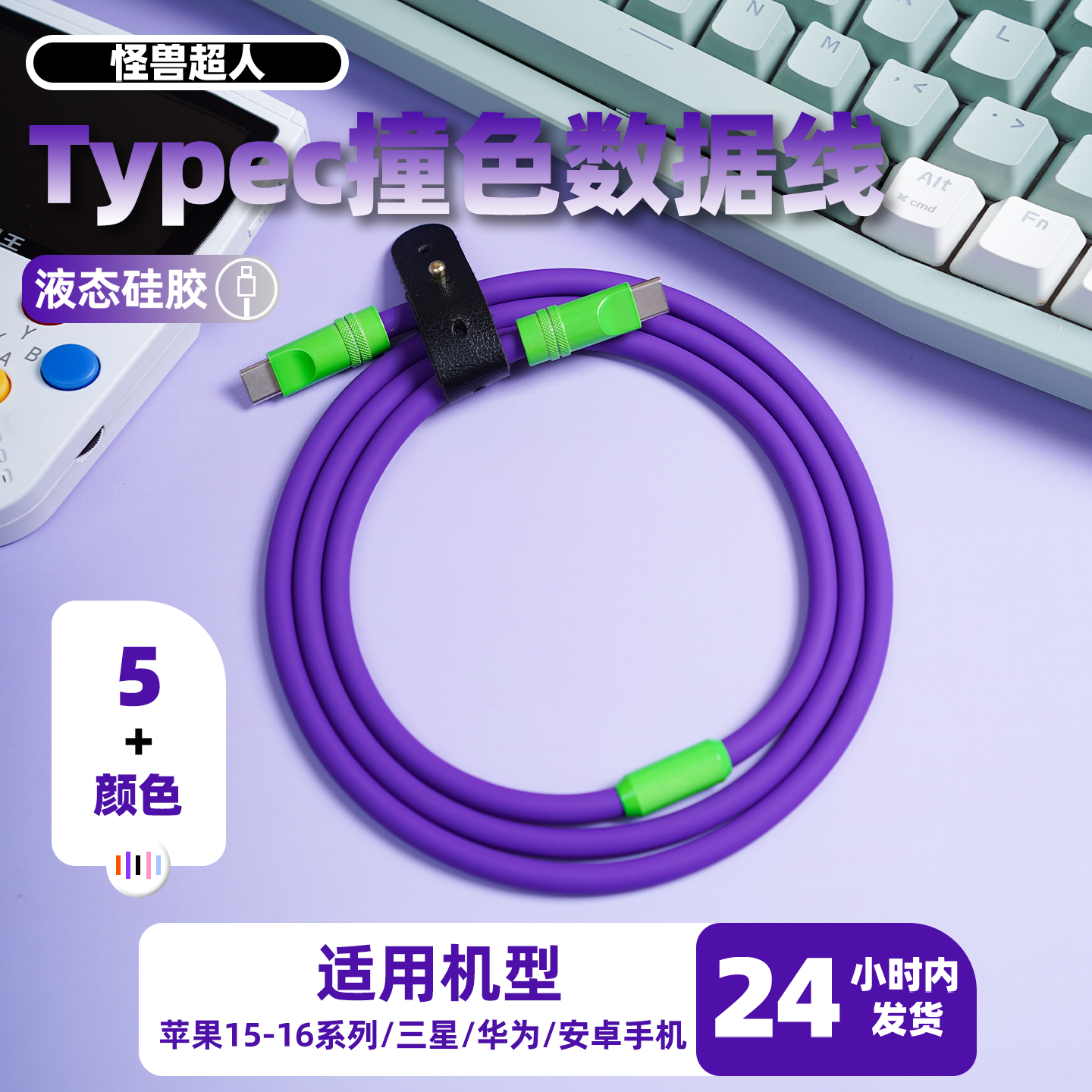 怪兽超人 240W快充双typec数据线适用苹果16华为iPhone15小米三星oppo安卓加粗2米长彩色液态硅胶手机充电线